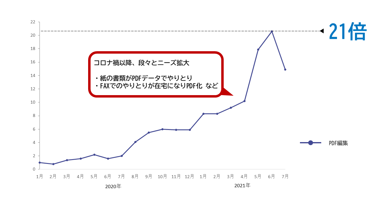 - 2020年1月の月間PV数を1.0とした場合の、「PDF編集」カテゴリー月間PV数比率