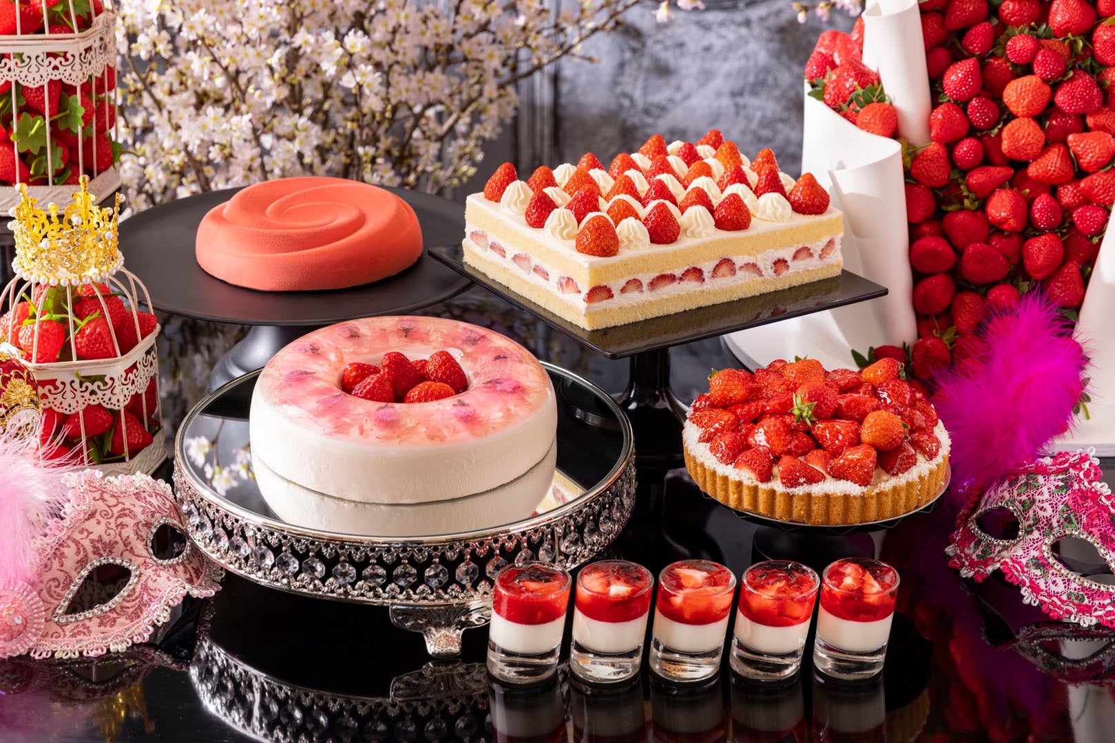 さらに、スイーツコーナーでは、人気のストロベリースイーツビュッフェ「SAKURA Strawberry Masquerade」より厳選した、旬のイチゴと桜のスイーツをご用意しました。最後のデザートまでお好きなだけお召し上がりいただけます。