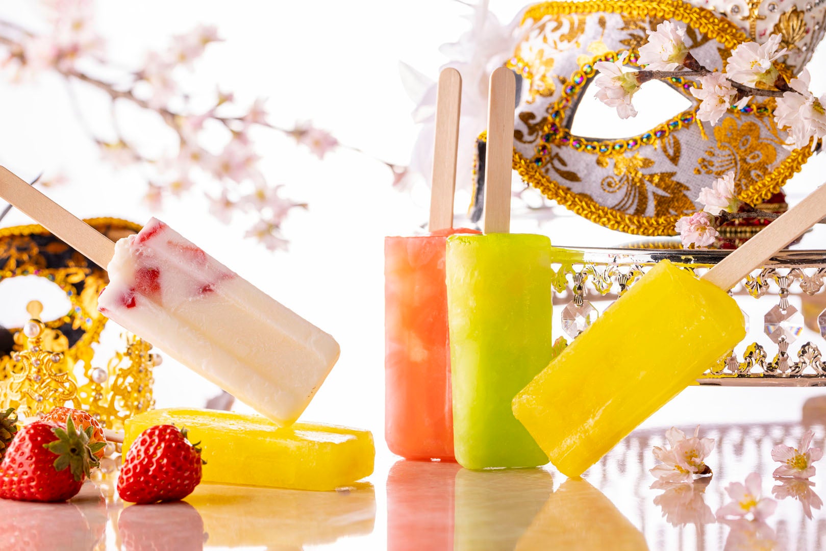 フルーツがたっぷり入ったホテルメイドのアイスキャンディー。イチゴヨーグルト、桃、マスカット、パイナップルの4種類をご用意。
