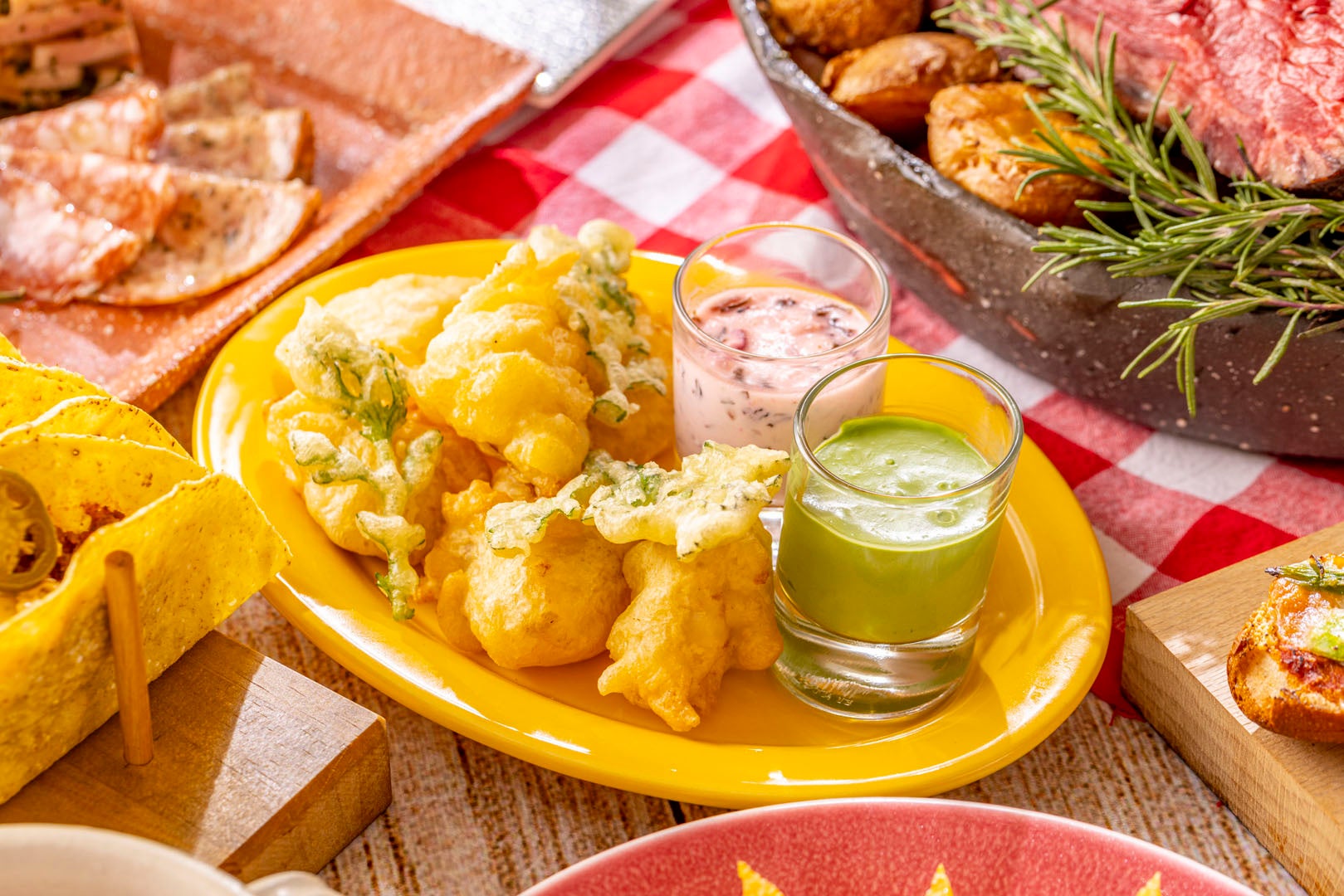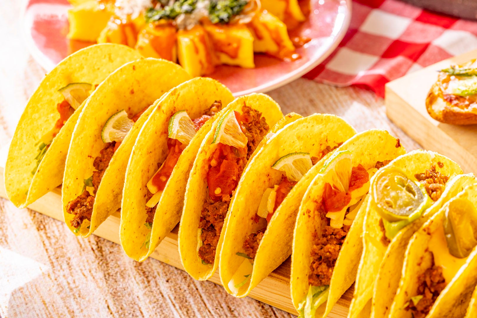 ワカモレ、チリサルサ、タコミートなどおすすめの具材を揃えました。お好みのタコスを作ってお楽しみいただけます。
