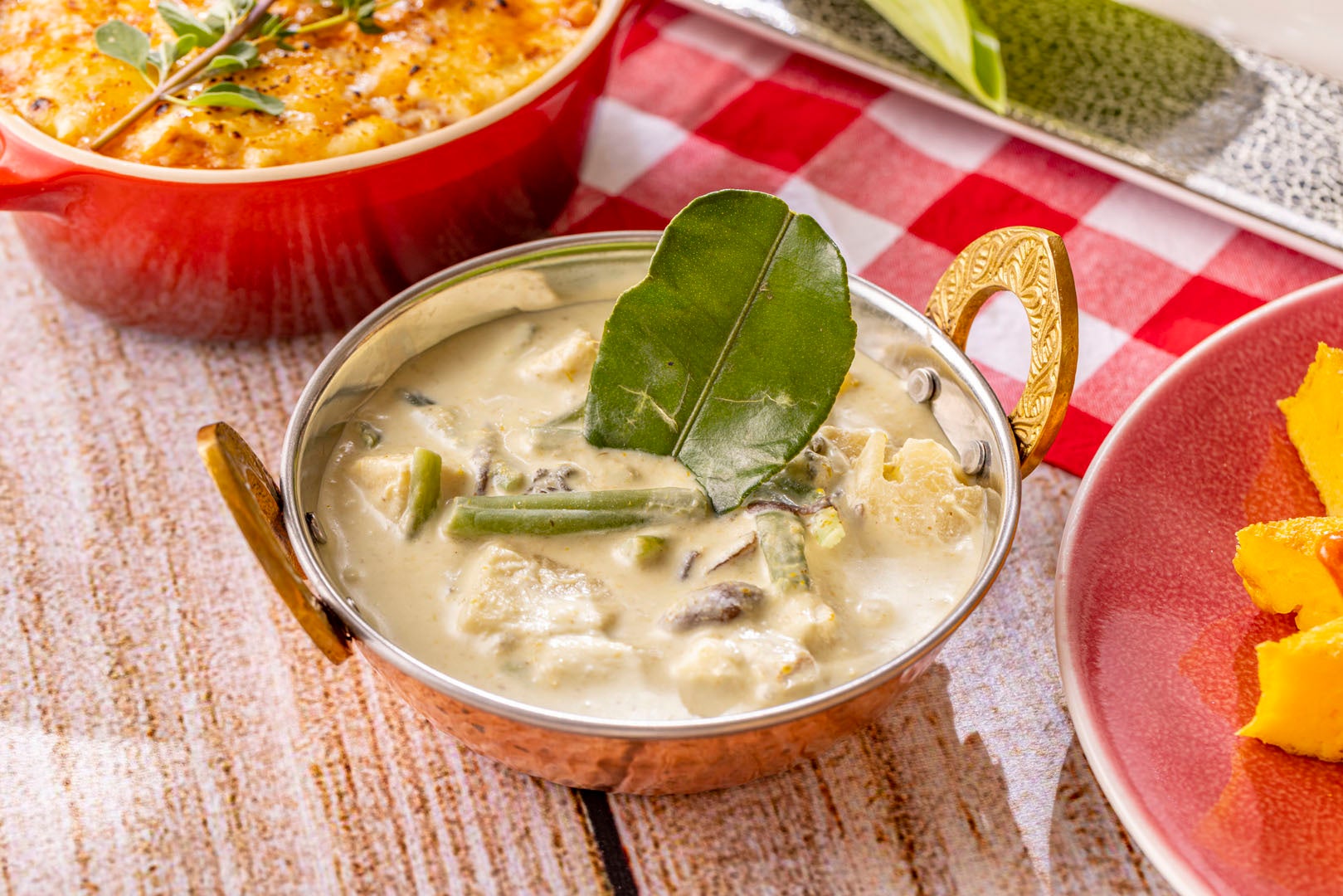 また、ヒルトン名古屋が得意とするカレーには、爽やかな強い柑橘系の香りがあるバイマックル(こぶみかんの葉)を使用し、味わい深いコクのある「バイマックル香る筍と山菜のグリーンカレー」をご用意しました。