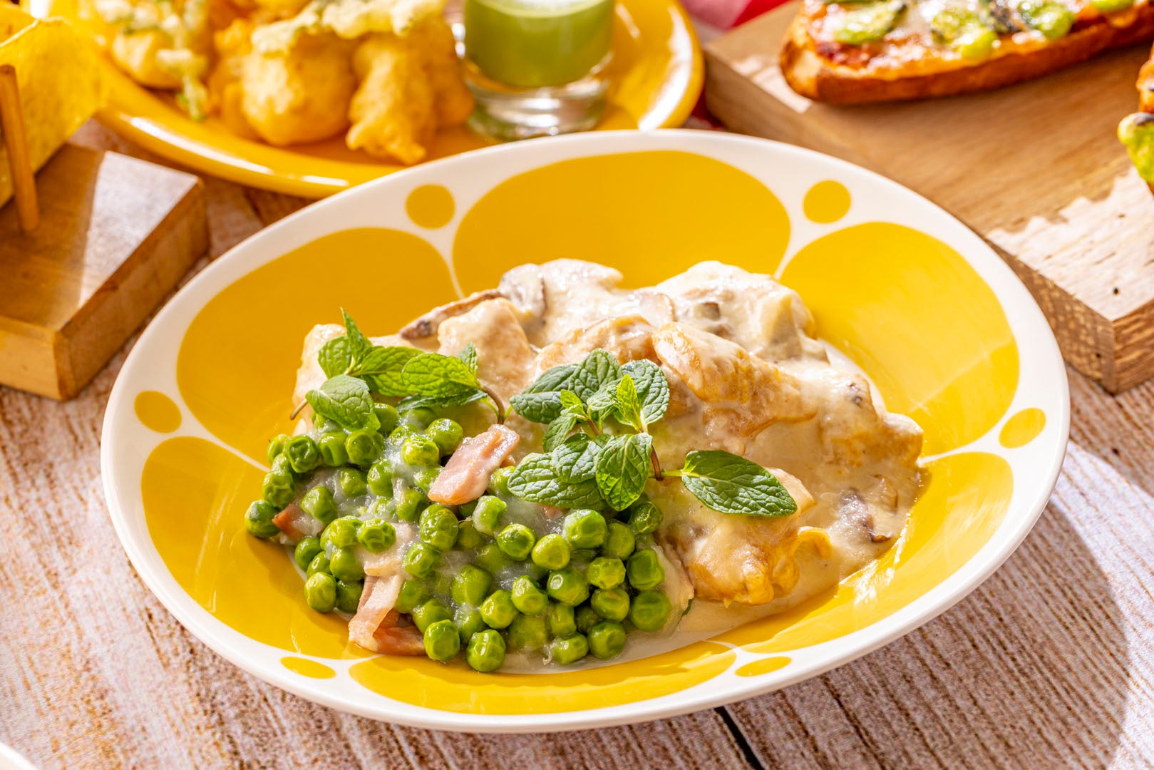 チキンのクリーム煮にミントの爽やかな風味をプラスし、軽やかな口当たりでお召し上がりいただけます。