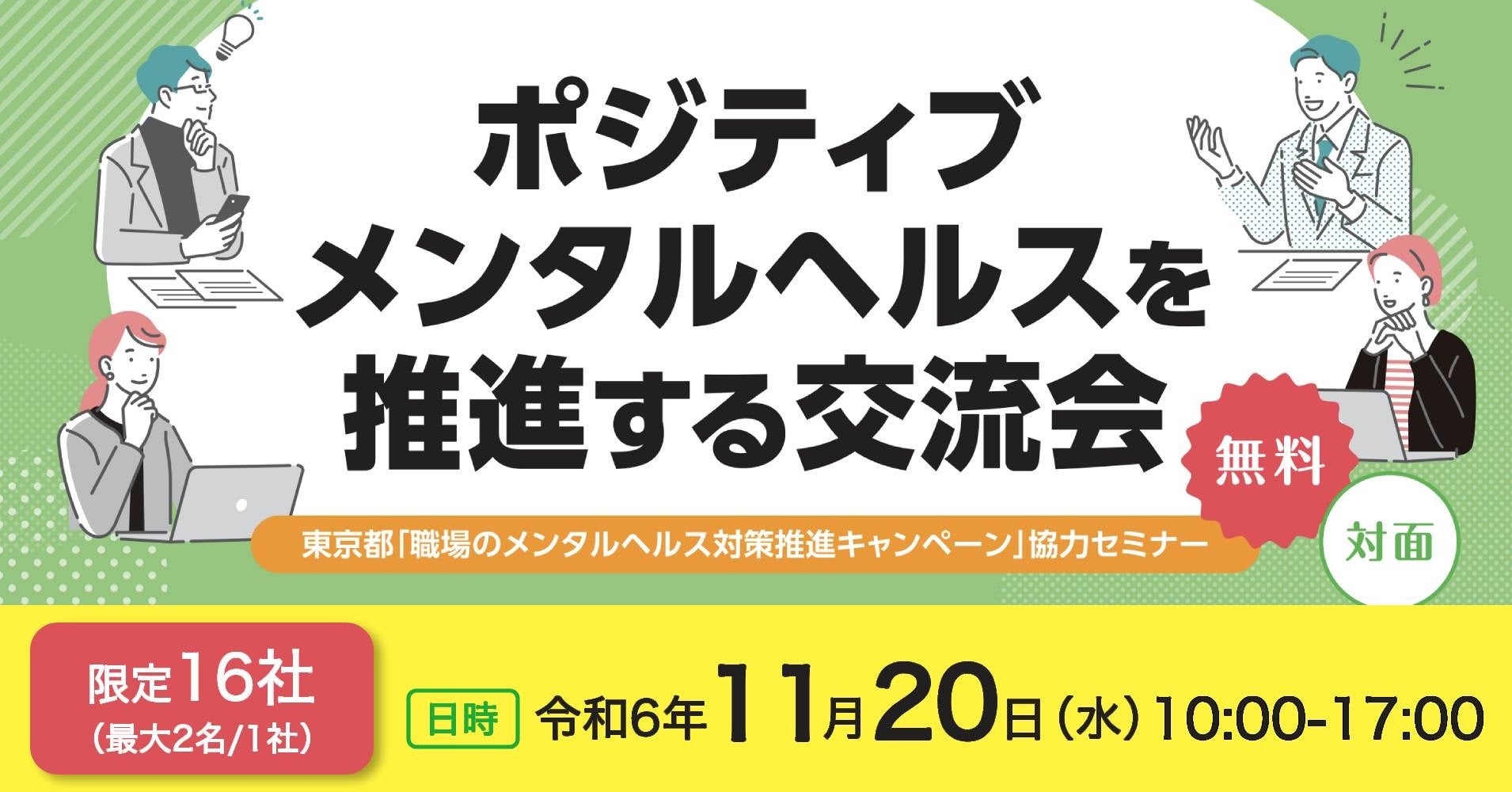 東京都 ポジティブメンタルヘルスを無料で学べる、充実の6時間セミナー11月20日(水)開催決定。【申込受付中・限定16社】