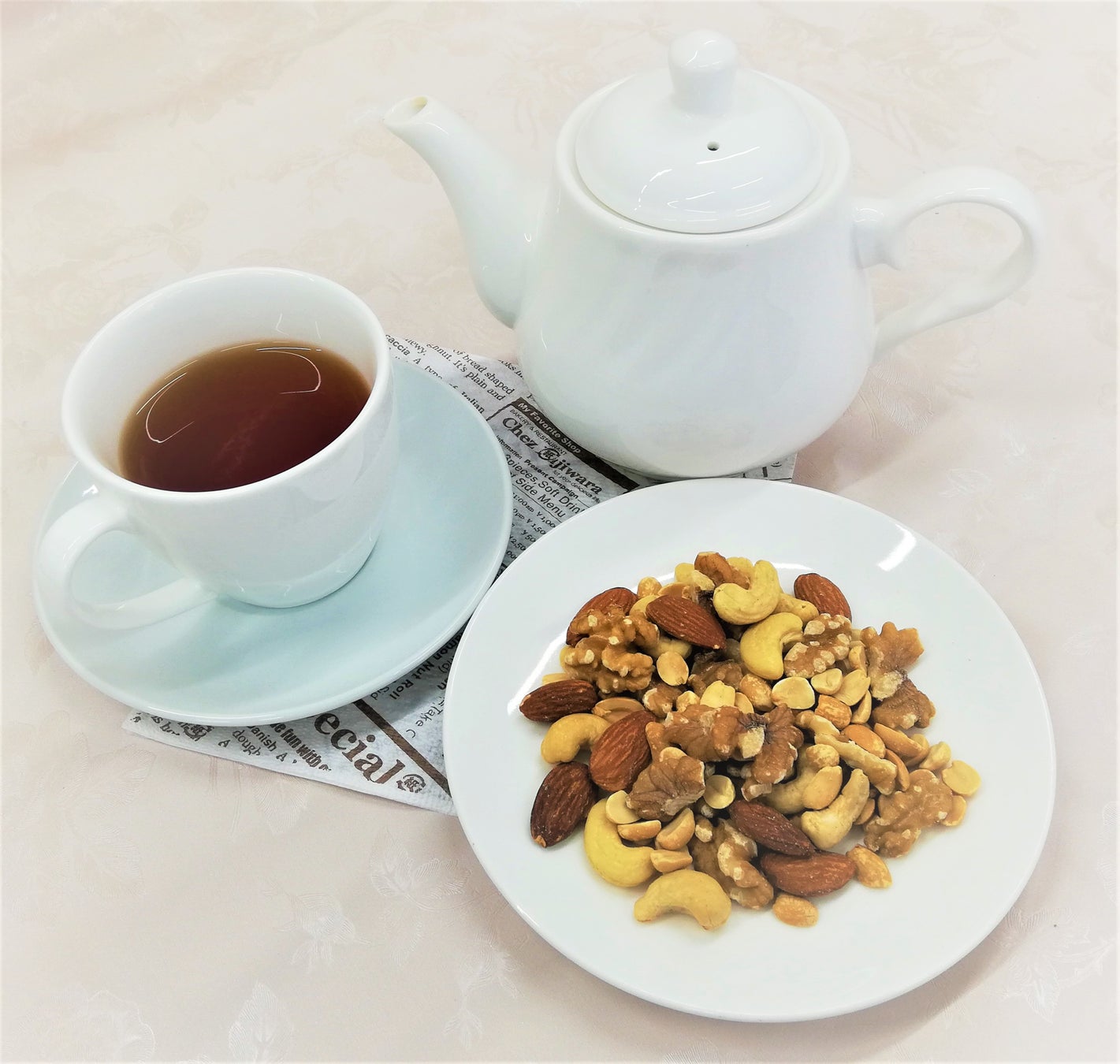紅茶と合わせるお菓子をお探しの方へおすすめです。プレミアムミックスナッツの香ばしさと紅茶のコク深い香りが相まって、贅沢なティータイムが味わえます。またヘルシーで香ばしいプレミアムミックスナッツと共に召し上がれば、紅茶の新しい風味を発見できます。煎りあげた3種類のナッツとくるみを混ぜ合わせているミックスナッツです。塩も油ももちろん添加物等を一切使わずに、ナッツに合わせた個性を引き出す焙煎方法にて1種類ずつ煎りあげています。ナッツ特有の味覚の3原則…香り(アーモンド)・甘み(カシューナッツ)・コク(ピーナッツ)。そこに健康(くるみ)を加え、シンプルでありながら素材の価値を引き出しました。ワンランク上のヘルシーで美味なナッツをご堪能下さい。