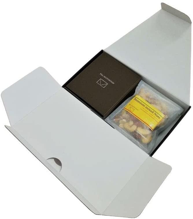 シックで高級感のあるパッケージを使用し、上品なデザインの個包装の紅茶にプレミアムミックスナッツをセットしました。紅茶好きの方に喜んでいただけるギフトになっております。