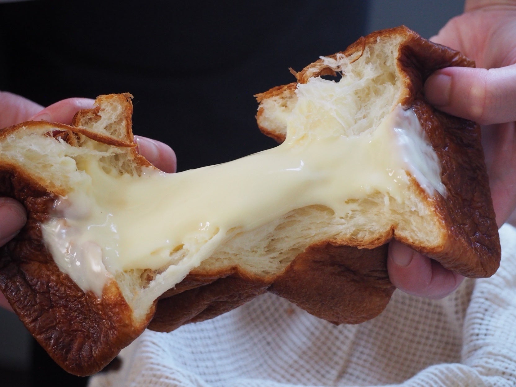 ムーの中にチーズフォンデュソースを入れてスチームしました。中からとろとろのチーズが溢れ出します。