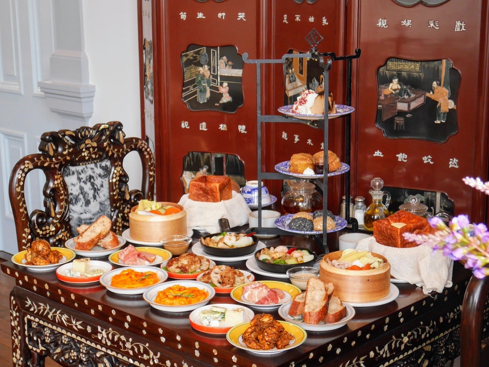 ケイジャンチキンと肉味噌蓮根の濃い味付け料理もあり、最後にデザートとして紅茶のバスクチーズケーキ、スコーン、ごま団子をご提供いたします。