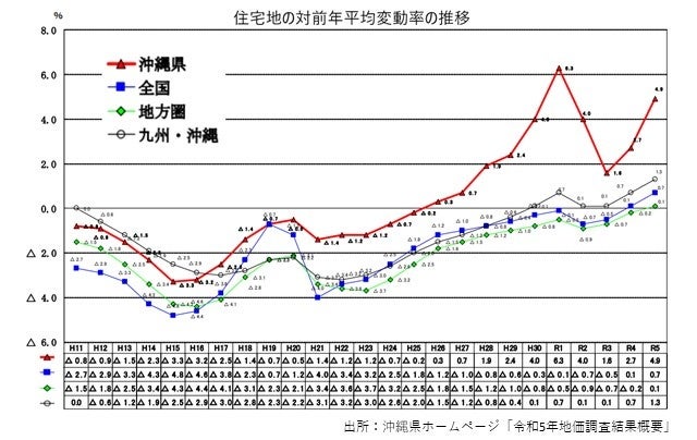 また、地価調査では、住宅地・商業地の対前年平均変動率の推移は、令和5年に5%近く上昇しております。