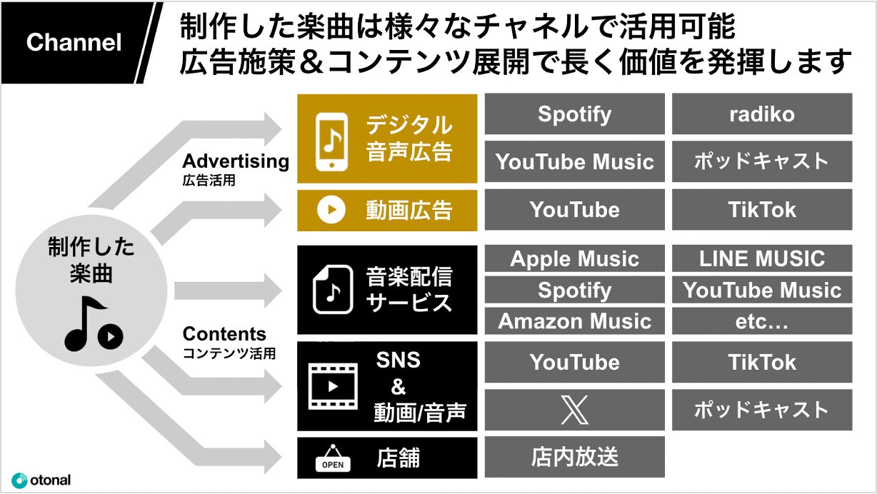 楽曲を活用したチャネル展開戦略/音楽配信サービス公開までをワンストップでサポート