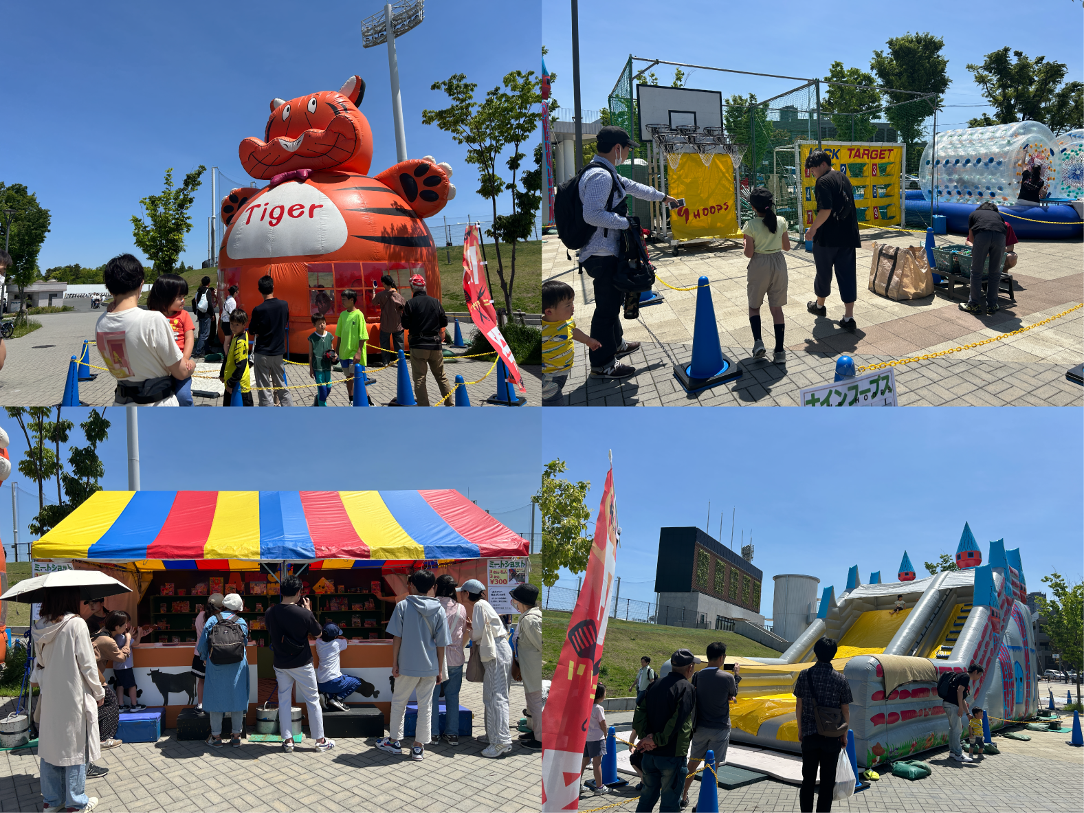 トランポリンやスライダー、アクアボールの「ふわふわ遊具」や、ゲームセンターや射的などの縁日。バスケットフリースローや、サッカーストラックアウトなど、"楽しめるコンテンツ”もご用意しております!!