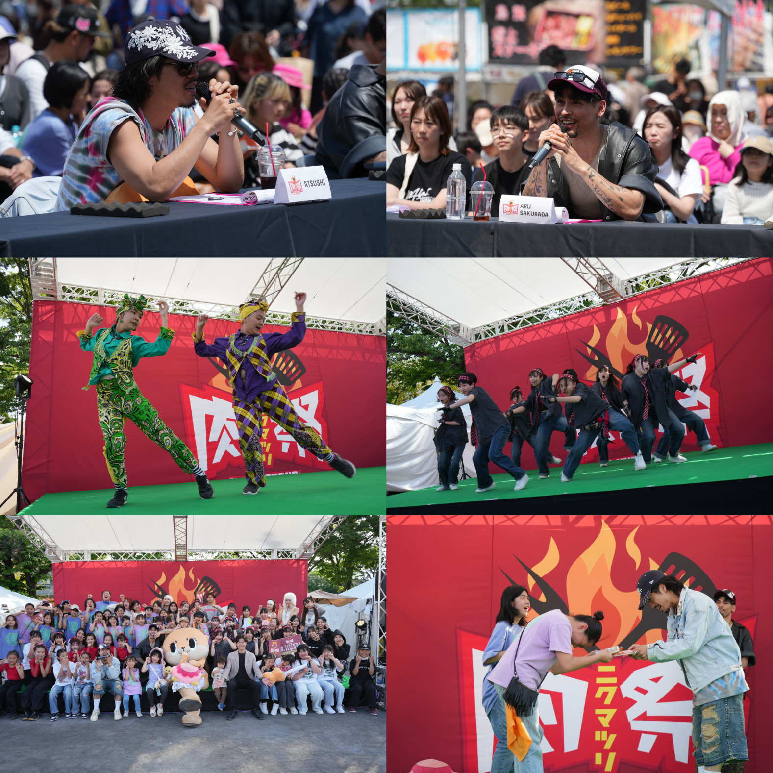 特設ステージにて、ダンスキッズのための特別企画『肉祭ダンスコンテスト2026』が”こどもの日”5月5日(火・祝)に開催!ダンスが大好きなキッズたちの熱いパフォーマンスが、お肉の香り漂う会場をさらに盛り上げます!今回のコンテストは、U-12部門・U-15部門・U-18部門の3カテゴリー制で実施。ゲストジャッジには、King&Princeの振付も手がけるATSUSHIと、今大注目のダンサーARU SAKURADAの2名が登場!各部門の優勝チームには記念トロフィーと、副賞として「肉祭で使用できるフードチケット1万円分」をプレゼント!