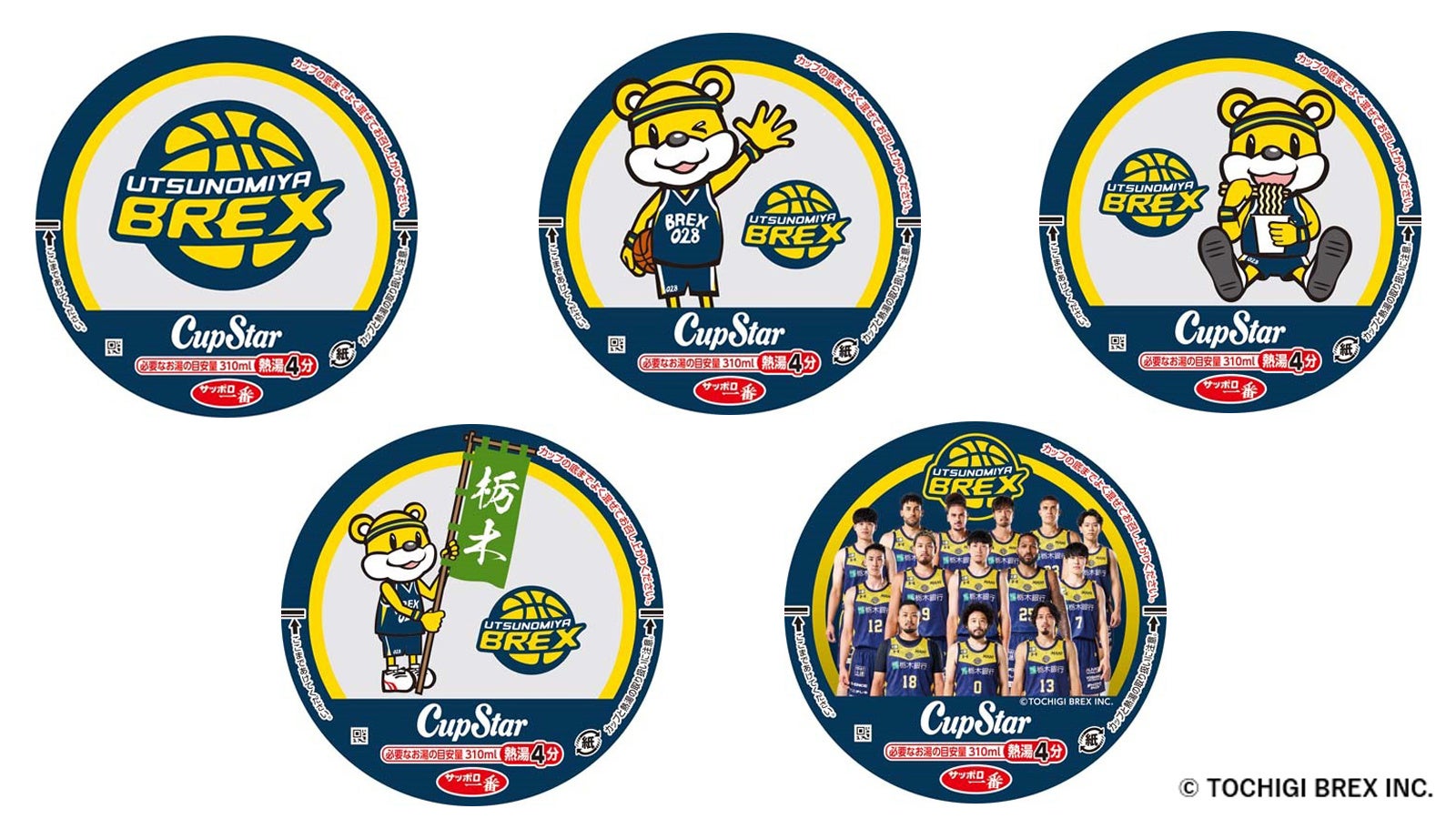 チキンをベースに香味野菜の風味を合わせたキレのあるしょうゆ味の「栃木 佐野らーめん」のフタにブレックスの選手たちや#028ブレッキー、チームロゴなど計5種類のフタのデザインが登場します。