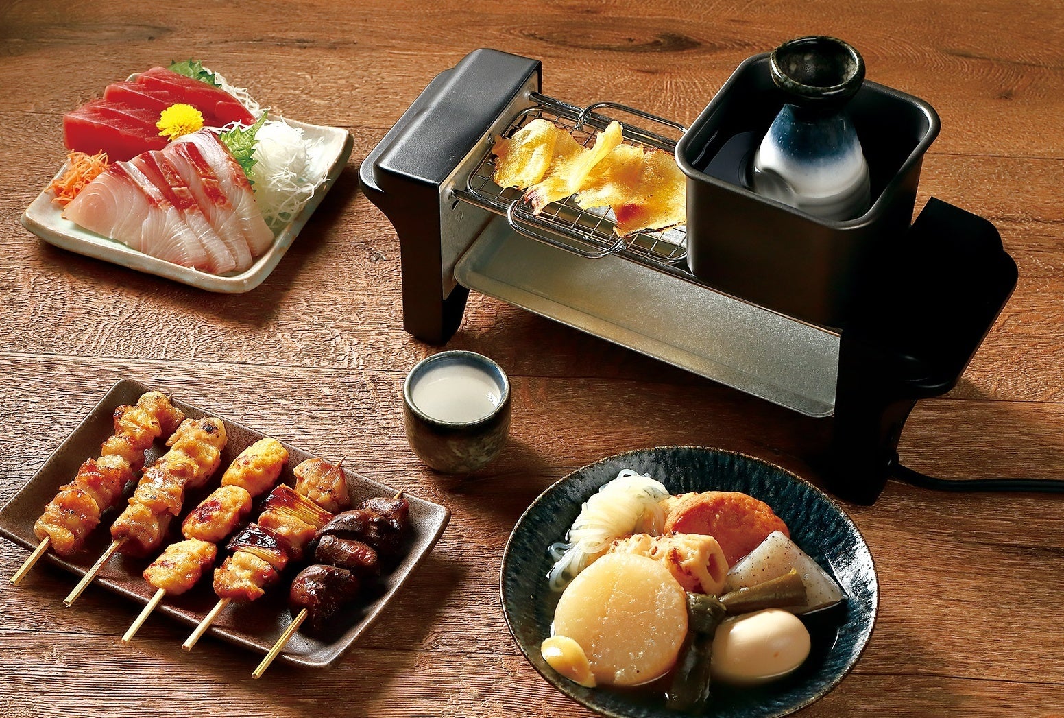 アツアツの晩酌グルメと熱燗が自宅で楽しめ、身近な食材を電気ヒーターで温めるだけで美味しくできるという魔法を発見しました。