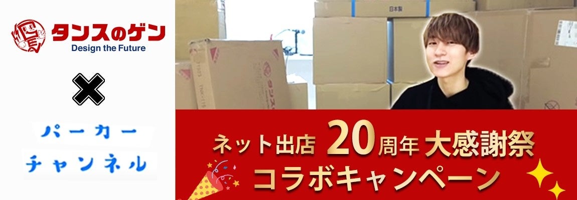 家具・インテリア×EC事業を展開するタンスのゲン株式会社(以下タンスのゲン、本社:福岡県大川市下林、代表取締役:橋爪福寿)は2022年7月15日(金)より、ネット出店20周年を記念して、動画クリエイター「パーカー」氏がセレクトしたおすすめのアイテムが20名様に当たるコラボキャンペーンを開催することをお知らせします。