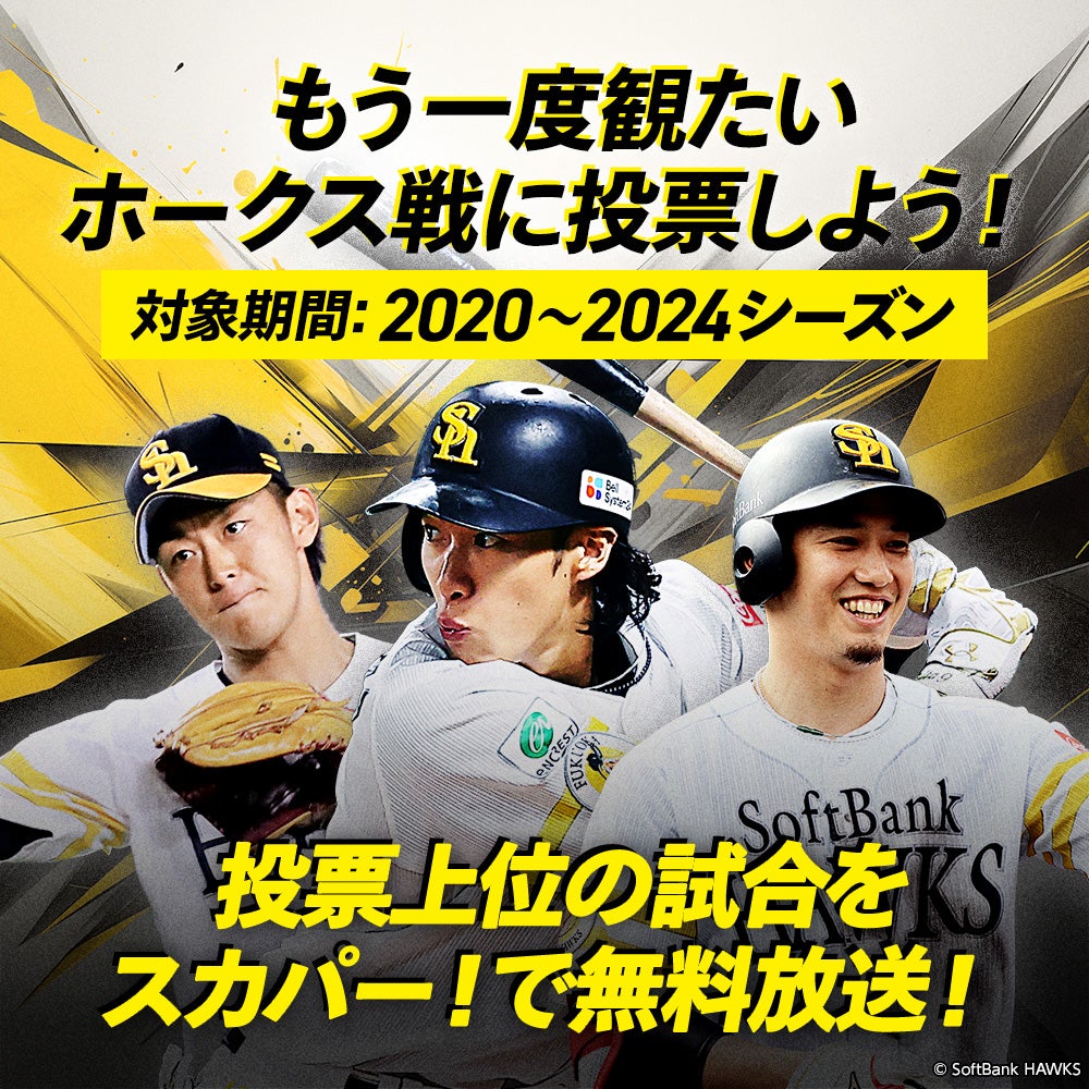 スカパー! 投票祭りの第一弾企画「もう一度見たい ホークス戦に投票しよう!」では、実際にファンに選ばれた投票数上位の試合がスカパー! で無料放送される、ファン参加型の企画となっております。
