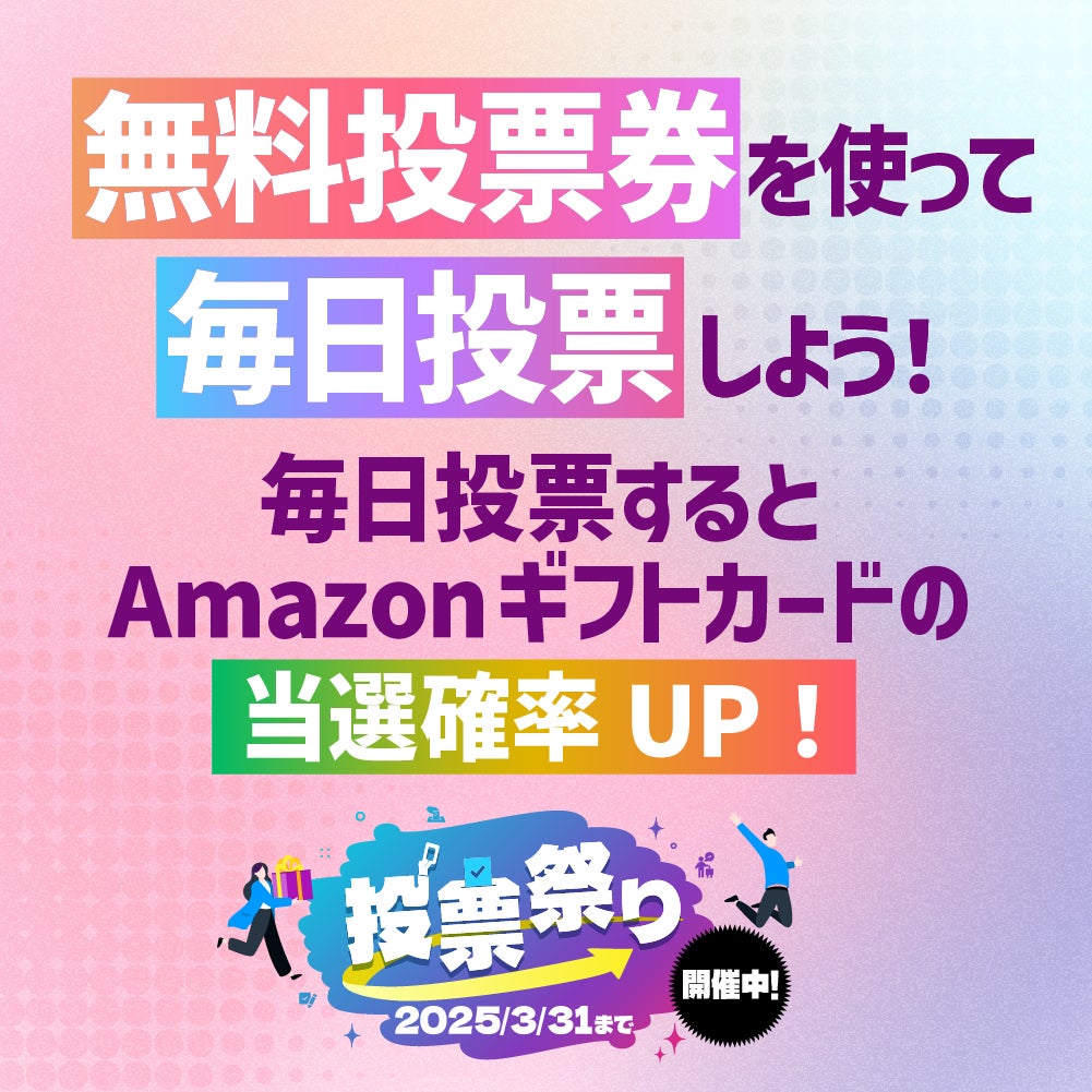 2024年11月8 日(金)~ 2025年3月31日(月)の期間多数の投票企画を実施!投票すると抽選で毎月10名様にAmazonギフトカード1万円分が当たる‼