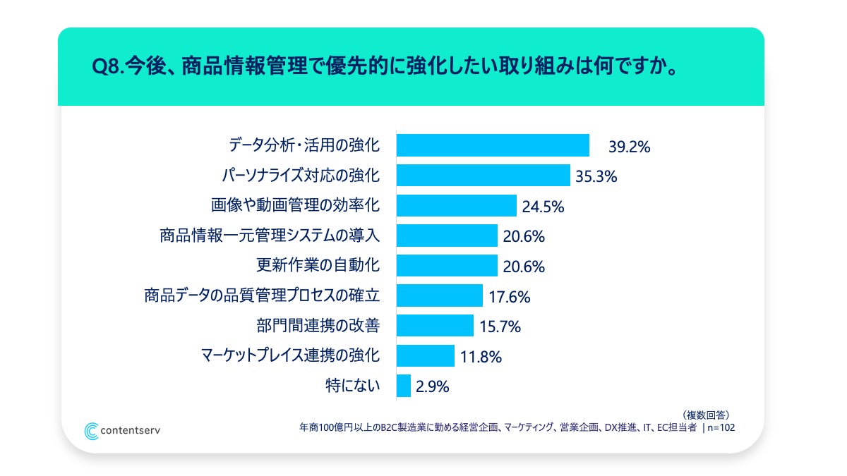 今後は「データ分析・活用の強化」(39.2%)や「パーソナライズ対応」(35.3%)といった、より高度な施策への関心が高まっている
