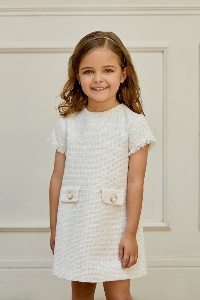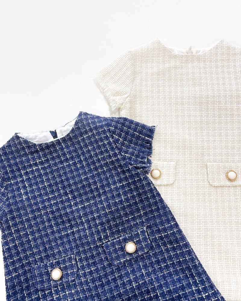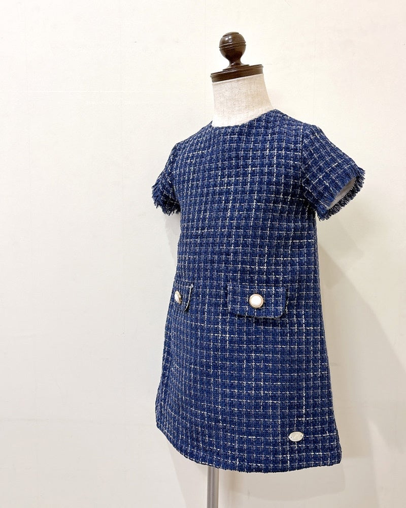 オケージョンにもお使いいただけるシンプルなツィードワンピース。