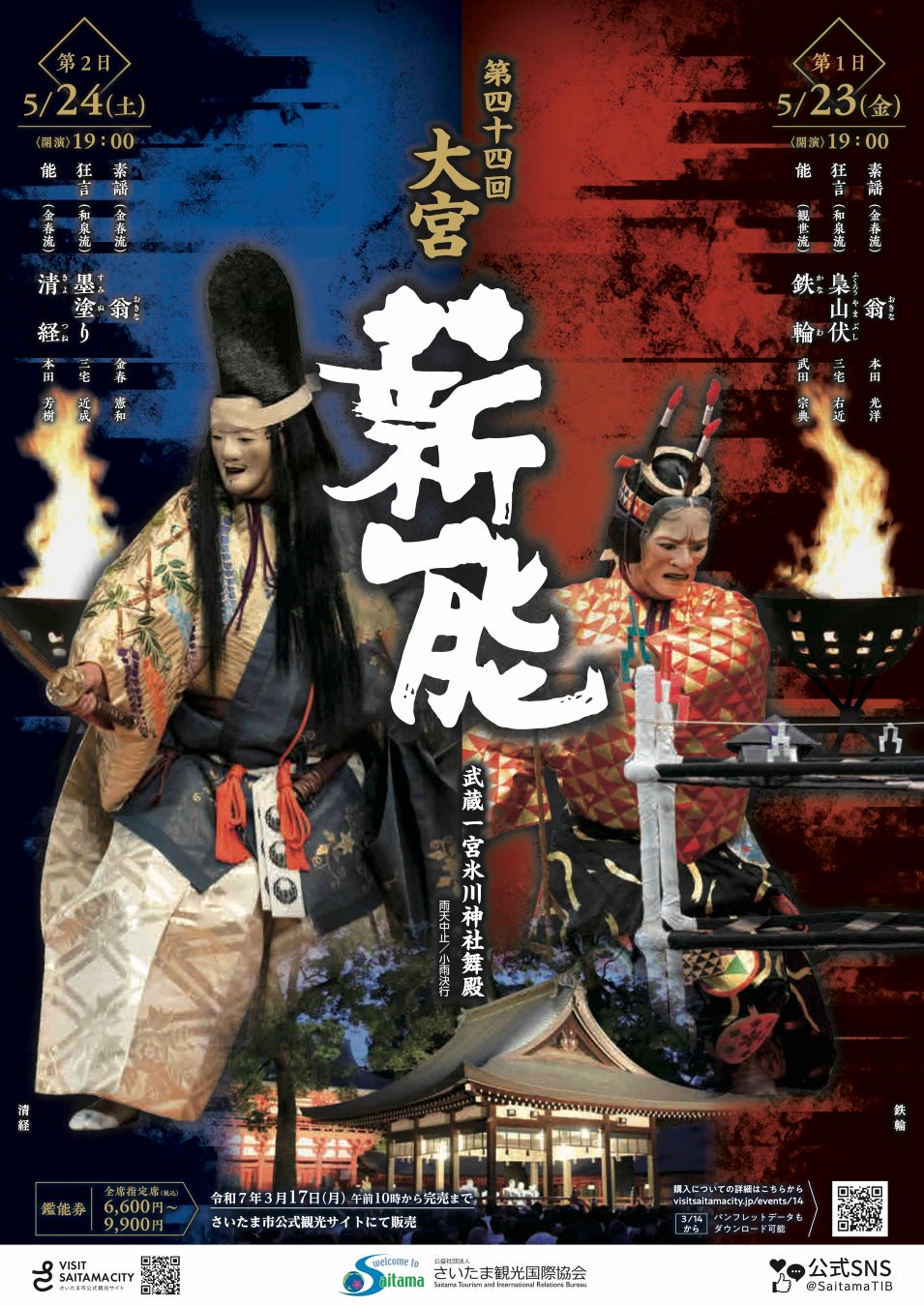 ・パンフレットは3月14日(金)に「さいたま市公式観光サイトVISIT SAITAMA CITY」大宮薪能イベントページ(https://visitsaitamacity.jp/events/14)にて公開します。紙媒体のパンフレットはございません。