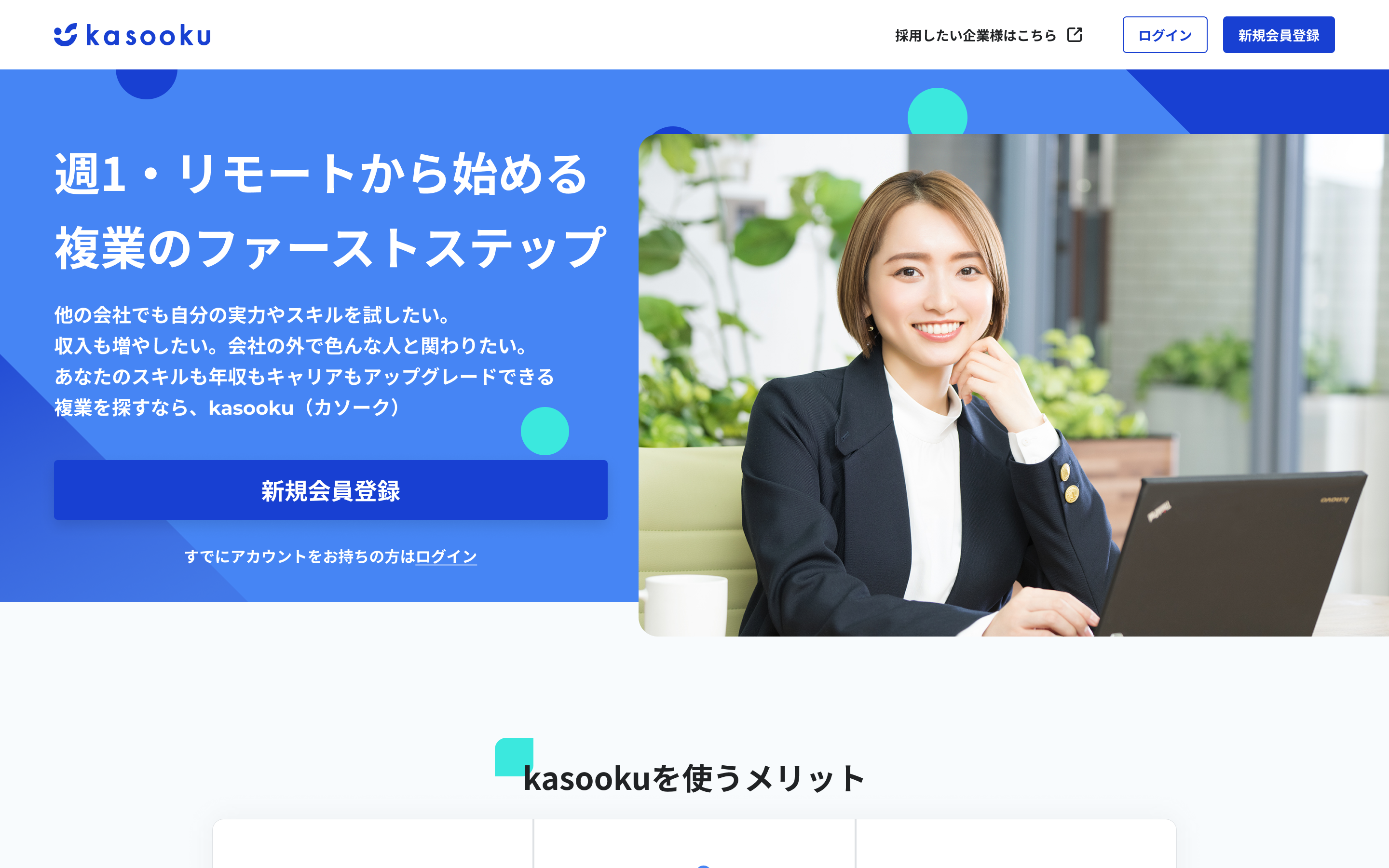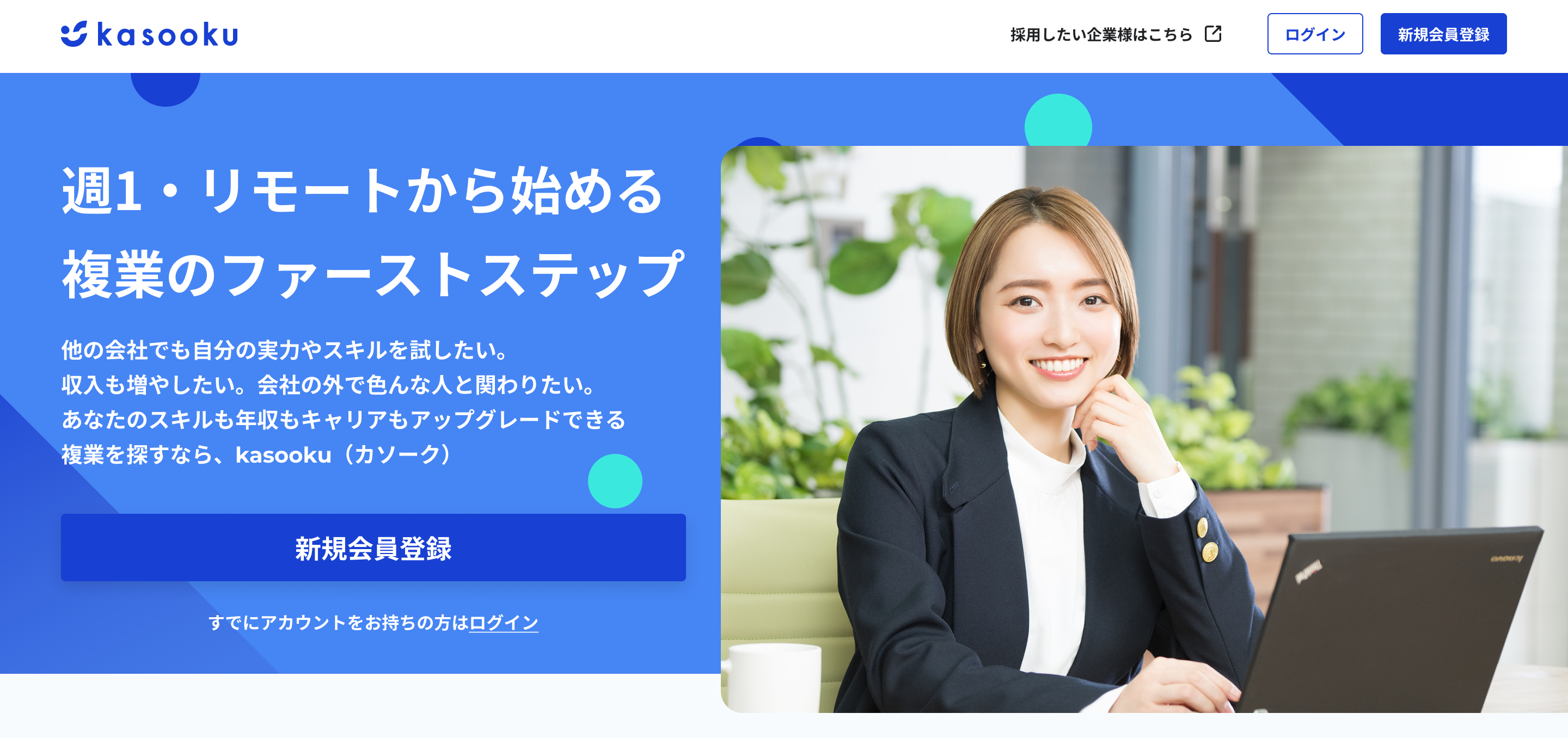 ・副業マッチングプラットホーム kasooku:https://kasooku.jp/side_jobs?tab=fukugyo