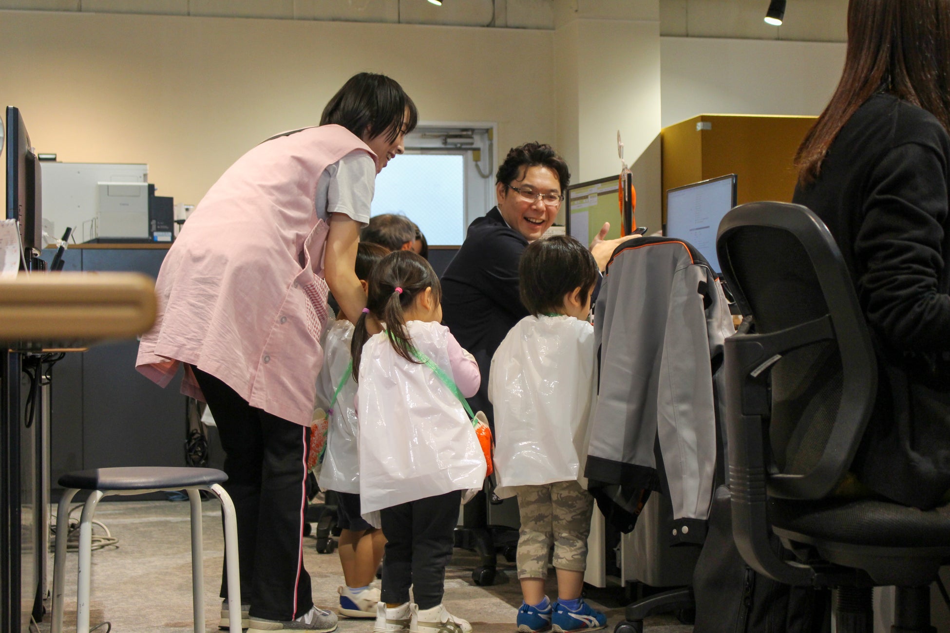 本社敷地内にある企業主導型保育園「りんごぐみ」では、社員と園児の交流が日常的に行われています。