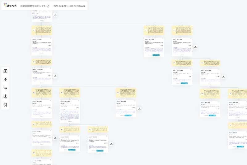 一般的なチャット型AIやスライド生成ツールは、"一本道な思考"になりがち。例えば「顧客をtoBからtoCに変えてみたら?」、「マネタイズ方法を買い切りからサブスクに変えてみたら?」と発想の途中で枝分かれする可能性を、個別に追いかけるのは不得意でした。また、結果が一瞬で出力されるがゆえの"納得感の欠如"という問題もあり、AIが生成した資料は綺麗だけど自分で語れない、という課題がありました。