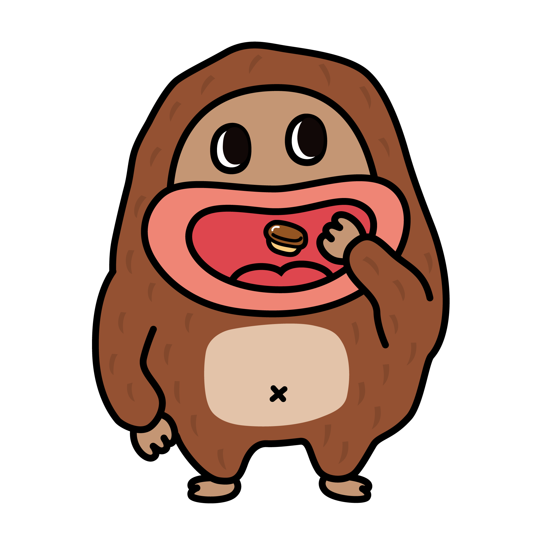 本名「チョコジロー」。チョコデール⼭に住む⾷いしんぼうな“珍獣”です。ある⽇、偶然チョコデール⼭で出会った⼈間の⼦供からビスケットをもらい、チョコとビスケットを合わせて⾷べたら、その美味しさにびっくり!それ以来、⼈間と仲良くなりたい気持ちから「サク⼭チョコ次郎」と⼈間のまねをして名乗るようになり、チョコビスケットの美味しさを知ってもらう旅をしています。「〜チョ」が⼝癖で、茶⾊いモフモフした丸くてゆるいフォルムに⽬が離せない癒しのキャラクターです。