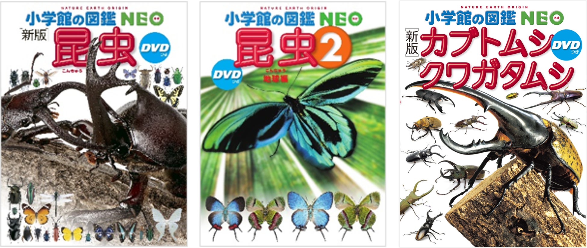 『小学館の図鑑NEO』は、シリーズ累計発行部数が約1,500万部を超える、売上No.1の学習図鑑です(2023年1~12月調べ)。『小学館の図鑑NEO[新版]昆虫 DVDつき』『小学館の図鑑NEO カブトムシ・クワガタムシ』など、シリーズ全28巻。「NEO」の由来は、Nature(自然と生き物)、Earth(地球と宇宙の)、Origin(起源をたずねて)の頭文字から取っています。