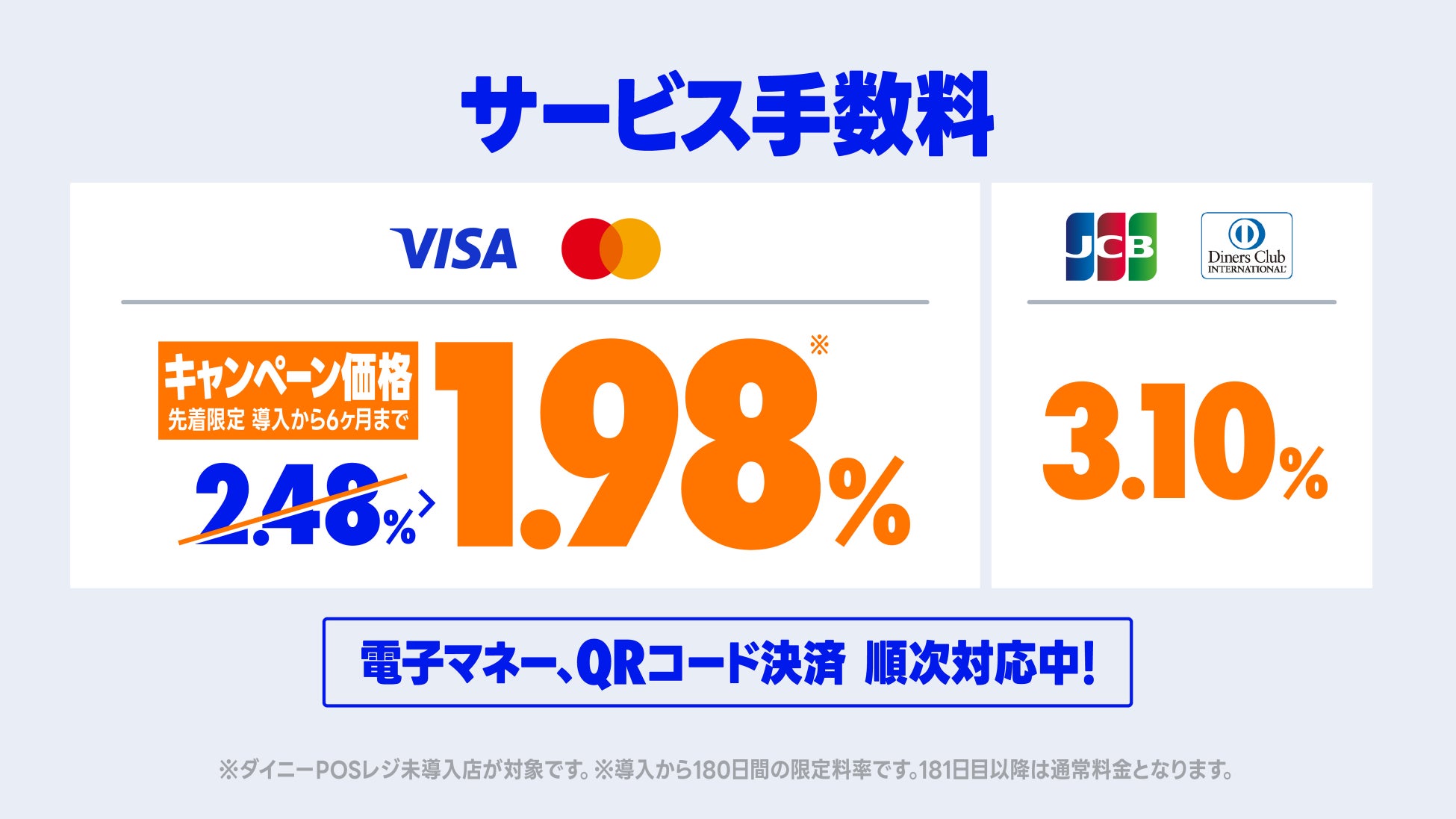 〜 先着2,000店舗に決済手数料1.98%で提供する「ダイニーキャッシュレス手数料割引キャンペーン」を実施 〜