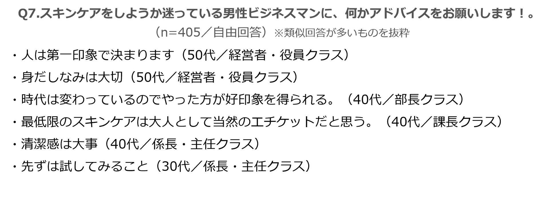 経営層から、スキンケア検討中のビジネスマンへアドバイス