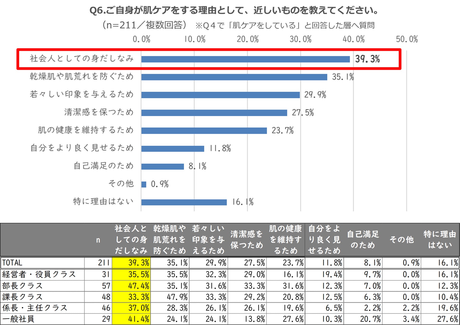 ●肌ケアは「身だしなみ」39.3%。ビジネスシーンでのエチケットとして認識広がる