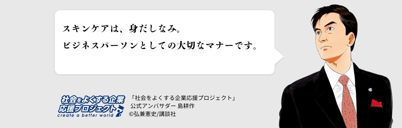 チーフPRオフィサーを務める島耕作※2は「スキンケアは、身だしなみ。ビジネスパーソンとしての大切なマナーです」とコメントした。