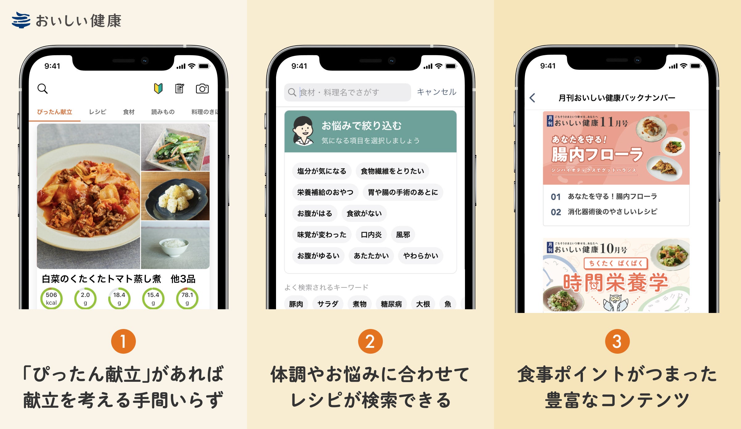 パーソナライズ献立提案・栄養管理アプリ『おいしい健康』胃がん、大腸がんの方に向けた食事支援機能を提供開始