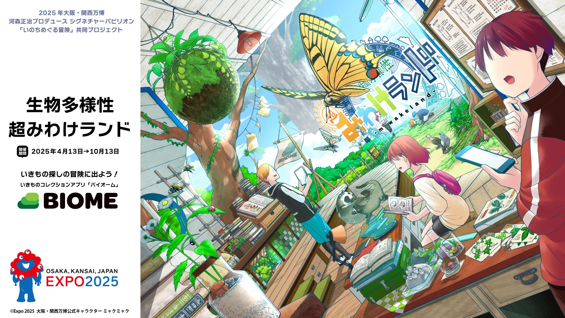 株式会社バイオームは、大阪・関西万博のシグネチャーパビリオン「いのちめぐる冒険」の河森正治プロデューサーおよび他協賛企業とともに、身近ないきものの見分け方を楽しく学べるアプリイベント「生物多様性 超みわけランド」を2025年4月13日(日)12時から開催します。