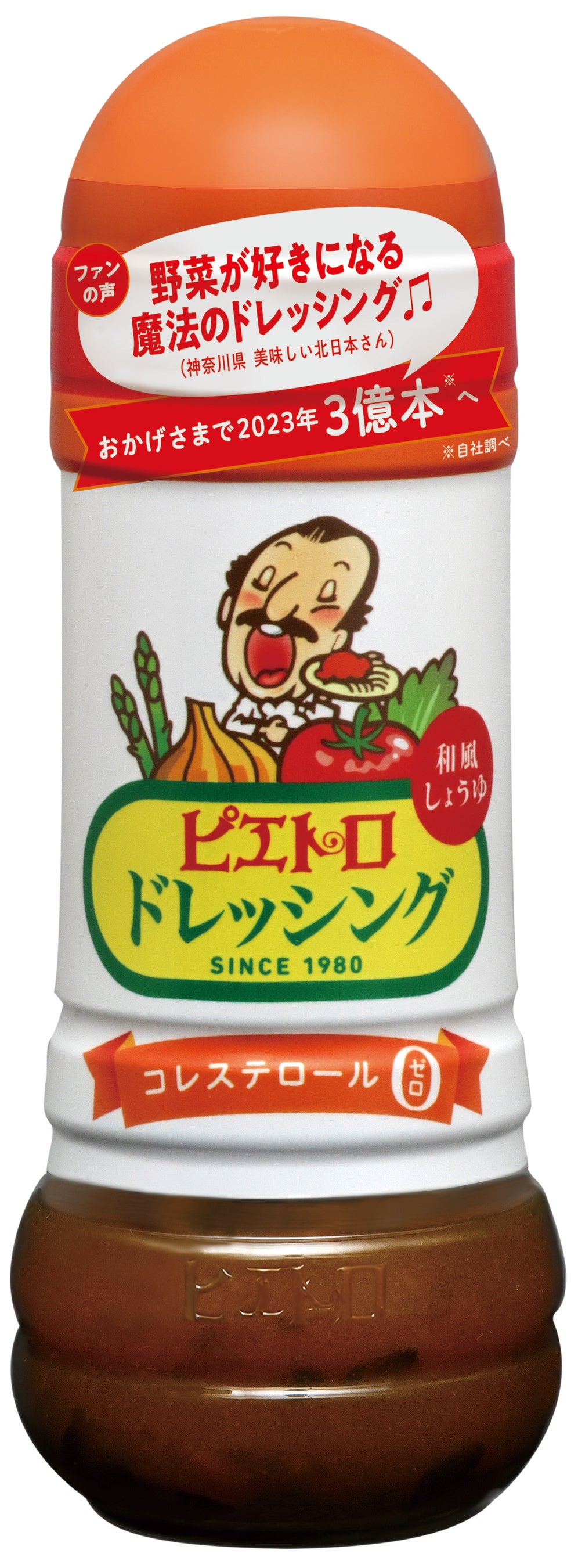 そこから数えて、まもなく42年を迎えるロングセラー「ピエトロドレッシング 和風しょうゆ」は、おかげさまでお客様に愛されて続けて、もうすこしで累計出荷本数が『3億本』を突破いたします。※出荷本数:自社調べ