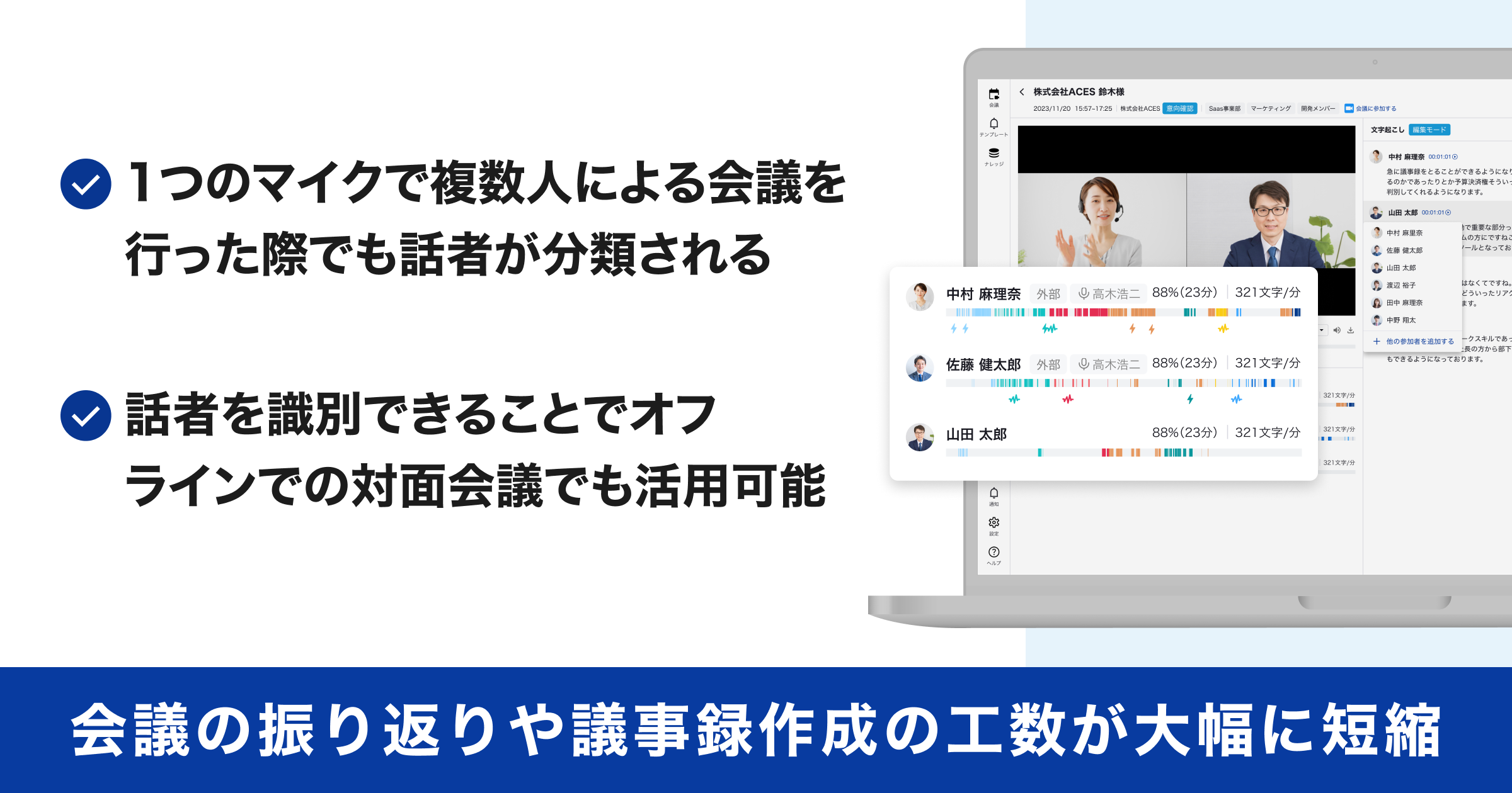 会議内容を話者ごとにAIが自動で書き起こしします