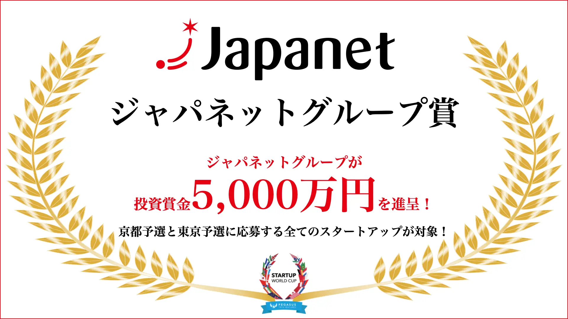 この特別賞は、大会優勝投資賞金約1億5000万円(100万米ドル)とは別に、日本予選のみに用意された特別な賞金機会で、日本予選に応募したすべてのスタートアップにチャンスがございます。また「スタートアップワールドカップ」では、上記投資賞金とは別に、毎年優秀なスタートアップの皆様に大手事業会社より、数億円規模のご出資がなされた実績がございます。スタートアップの皆様の革新的な事業内容を発信し、資金調達へ結び付けるチャンスです。日本全国のスタートアップの皆様、是非エントリーをお待ちしております!