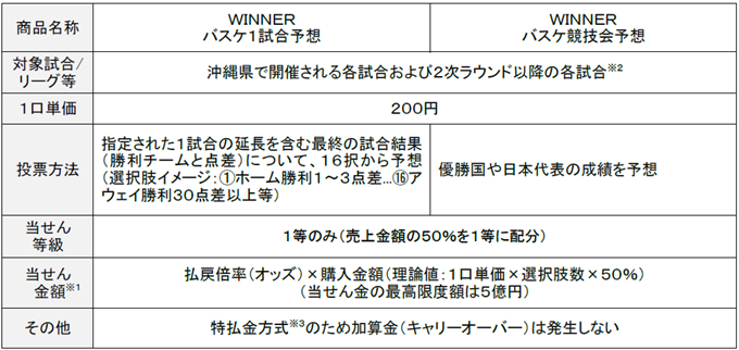 ■バスケットボールワールドカップを対象とした「WINNER」販売概要