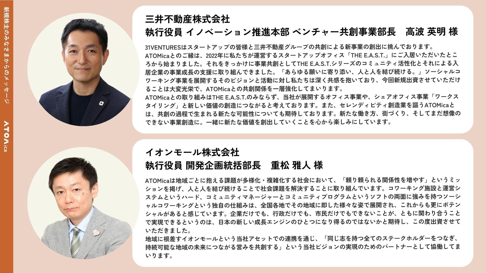 ATOMica、人と人を結び続けるプラットフォーム構築に向け三井不動産、イオンモール、KDDIを主な引き受け先として6.5億円の資金調達実施