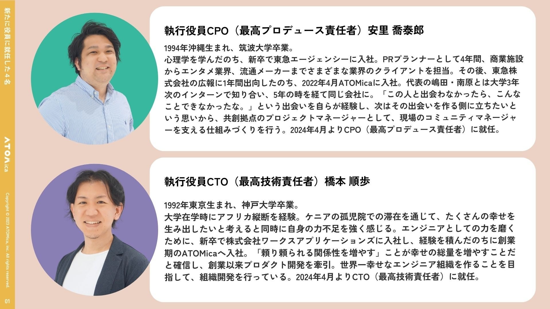 また、昨年の共同CEO化に続いて新たに4人のCxOが誕生したことで、意思決定・実行の品質・速度を一段上のレベルで表現できるようになり挑戦の幅も広がっています。