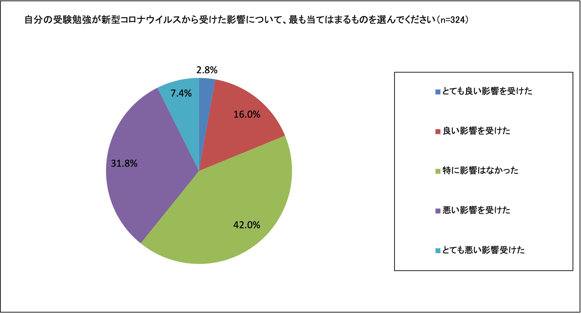 受験生のうち39.2%が新型コロナウイルスから「悪い影響を受けた」と回答する一方、18.8%の受験生は「良い影響を受けた」と回答