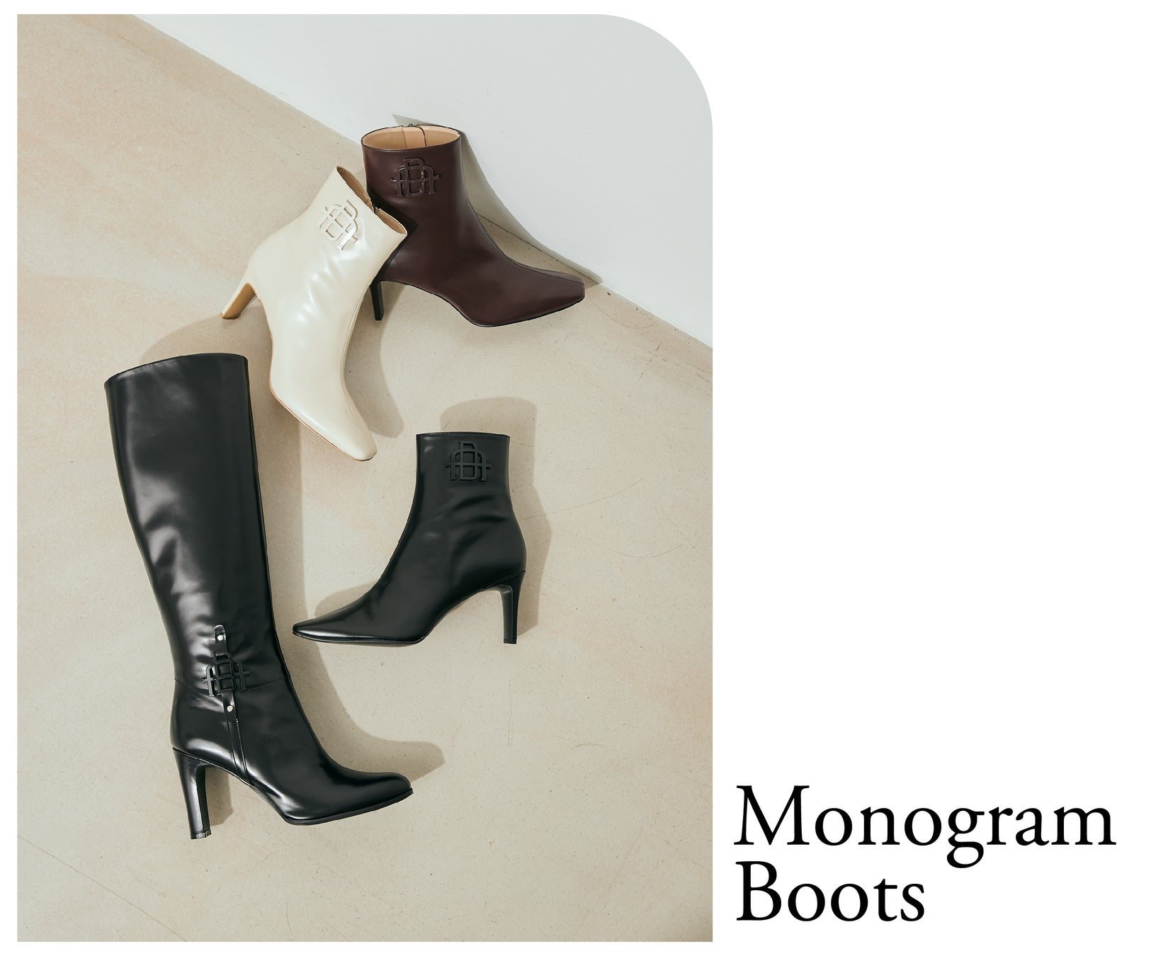 上質感のあるソフトなガラスレザーに、ダイアナオリジナルのモノグラムバックルを合わせた王道のクラシックブーツが限定アイテムとして登場。上品な艶感としなやかさが特徴のガラスレザーを使用し、ほんのりとした光沢感がブーツの表情を格上げしてくれます。ロング・ショート共に、ダイアナらしいすっきりとしたシルエットに拘り、甲の立ち上がりの美しいブーツに仕上げています。