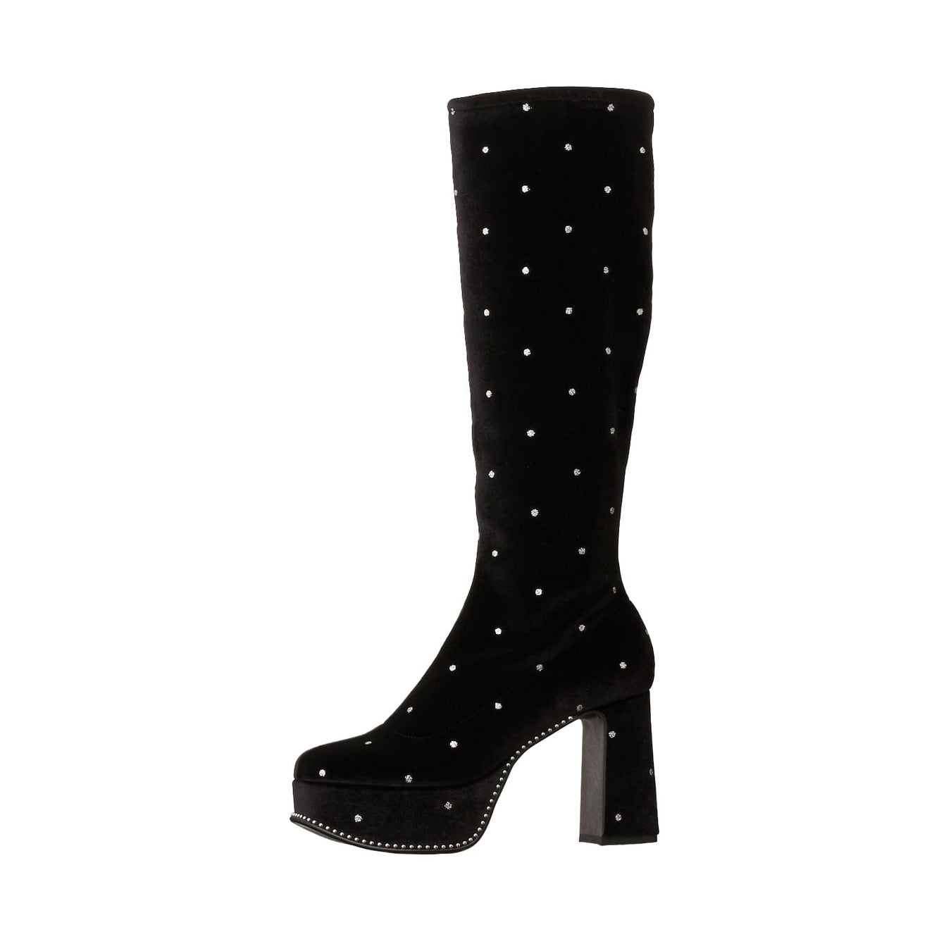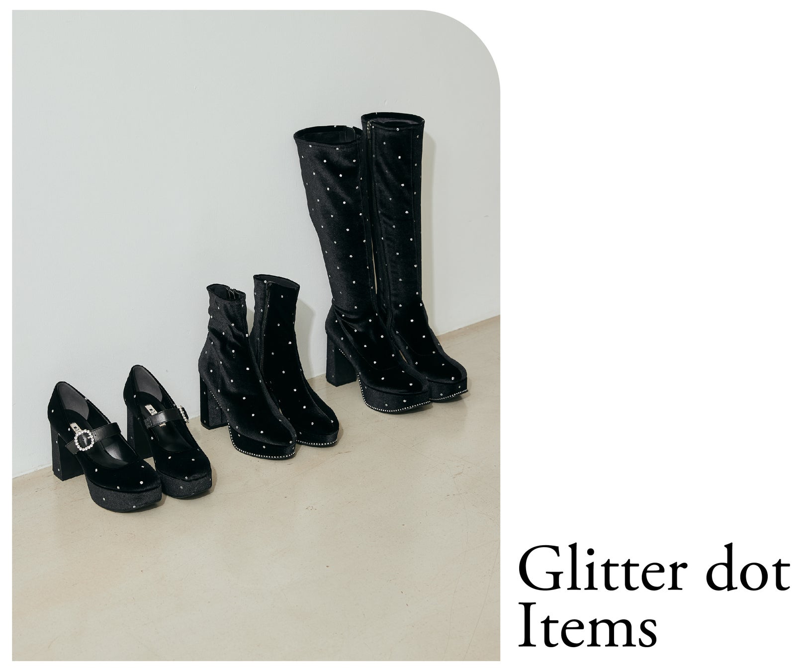 バレエコアの流れからロマンティックでフェミニンなムードが加速中。ただ甘いだけではない、甘さの中にほんのりピリッとしたモードな要素をプラスした、遊び心を持った「フェミニンモード」はY2Kムードにも通じる、今季注目のトレンドです。ハイボリュームで叶えるフェミニン×モードなアイテムがダイアナからも登場します。黒のストレッチベルベット生地にシルバーラメのドット柄は足元の装いをレディに魅せてくれる、限定ならではのスペシャルなアイテムです。