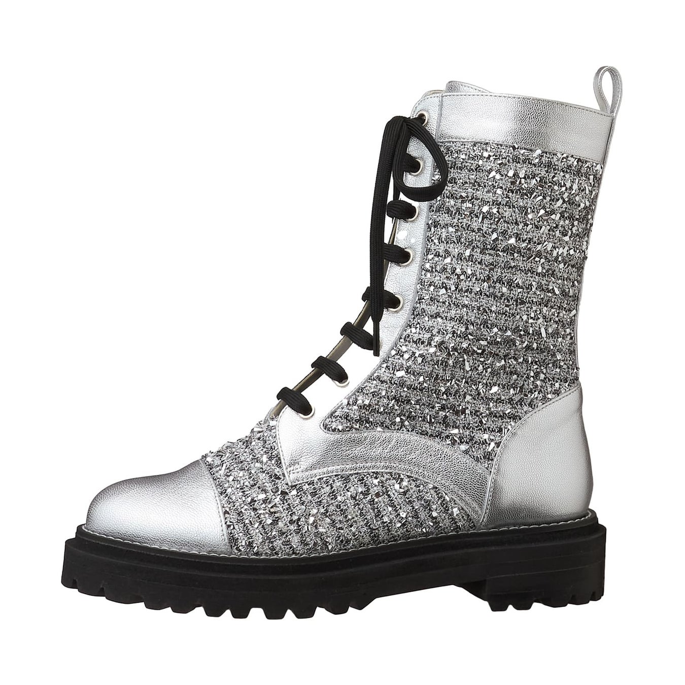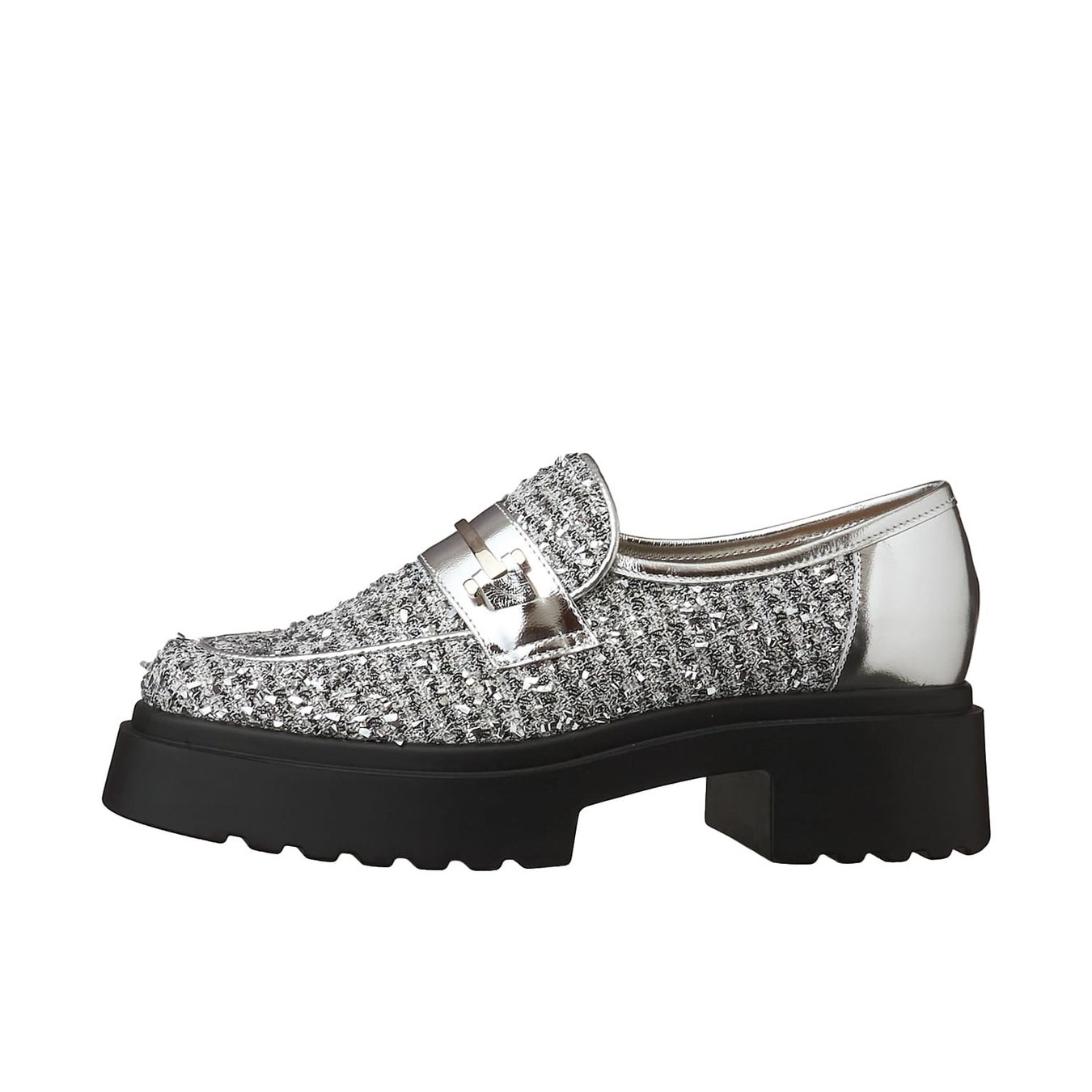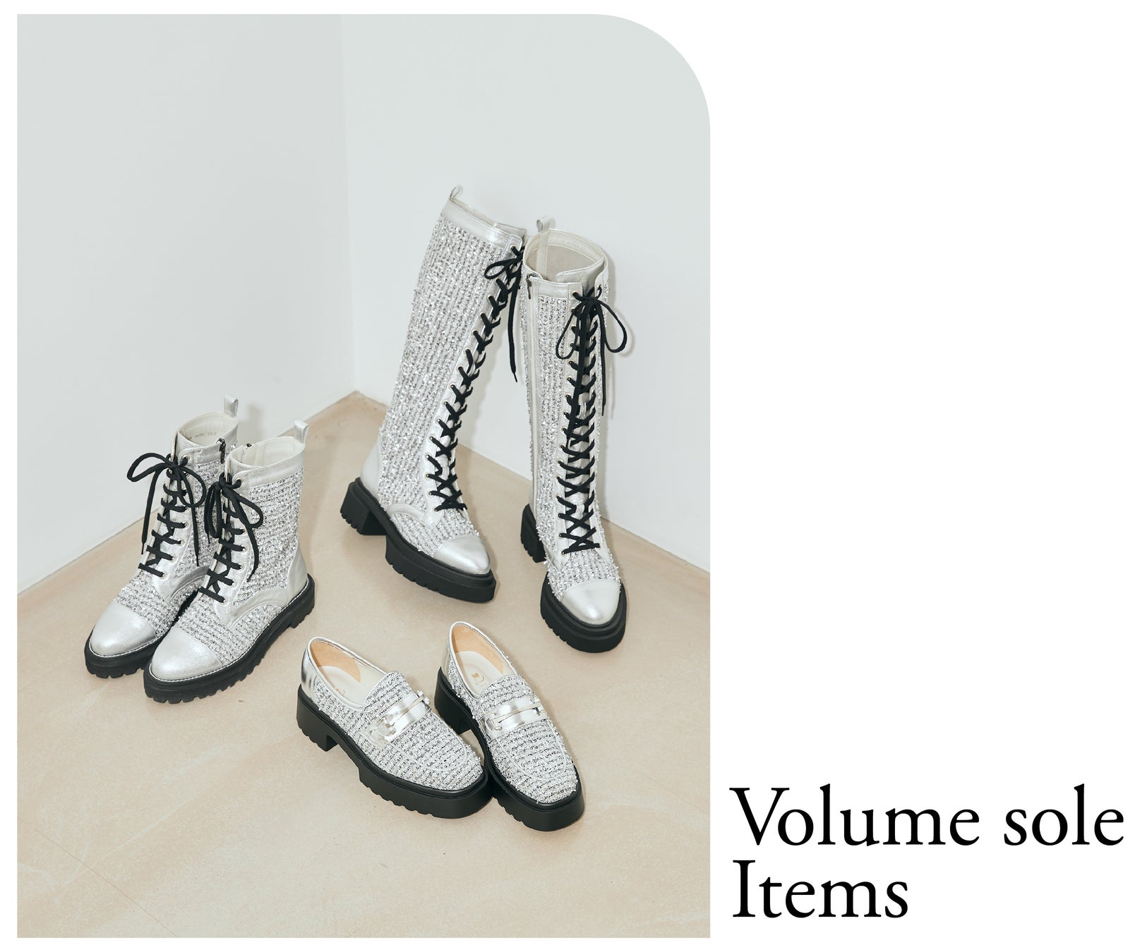 今シーズンのファッションに欠かせないロマンティックでフェミニンなムード、甘さのあるスタイリングにはカジュアルでインパクト大な厚底ソールがマストアイテム。今までのものよりボリュームアップさせたソールは、軽量と弾力性に拘り、見た目より履きやすい仕様に仕上げています。おすすめはメタリックのキラッと感が目を惹く、主役級のシルバー。異素材ミックスで立体感のある素材感で、他と差がつく主役級のカラーです。