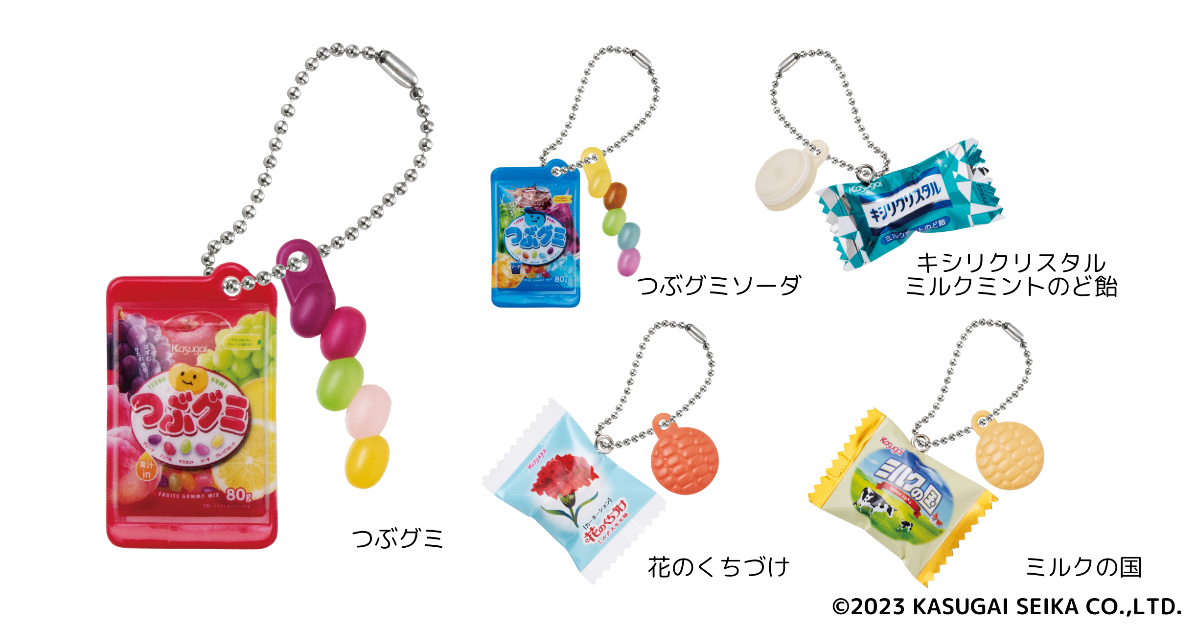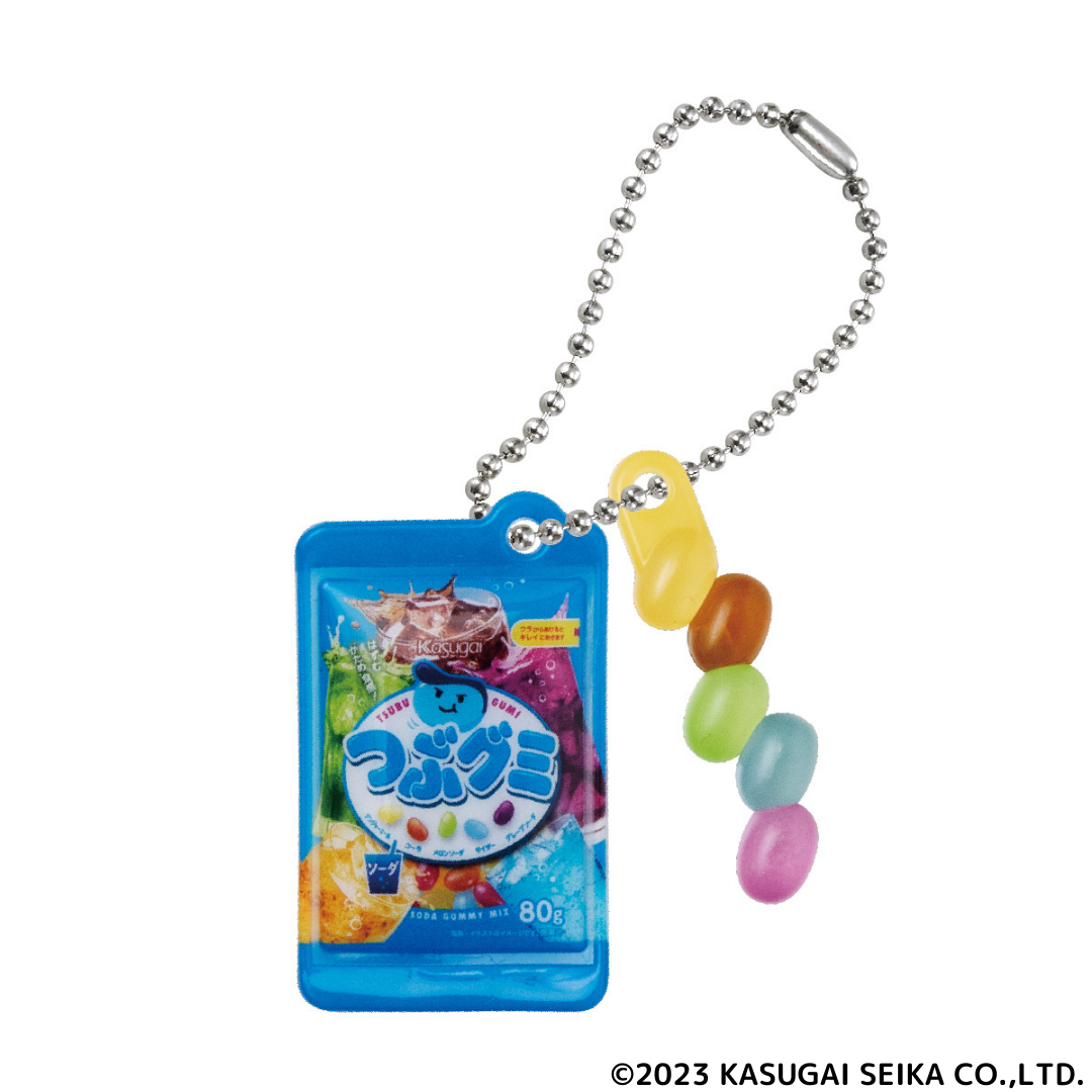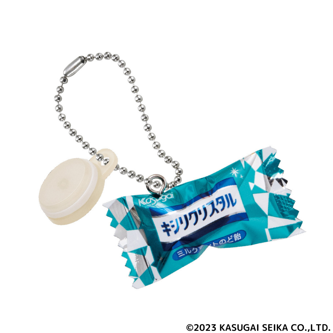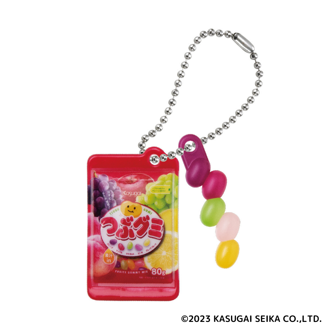 ミニチュアチャームになったのは、2024年に発売30周年を迎えるつぶグミブランドから『つぶグミ』『つぶグミソーダ』、発売40周年の『ミルクの国』『花のくちづけ』、2001年に発売以降愛され続けている『キシリクリスタル ミルクミントのど飴』のロングセラー計5商品。お菓子を食べているとき以外にも春日井製菓を身近に感じてほしい、という思いで様々な年代のお客様の記憶に残っている商品を選定しました。グミはパッケージを振るとシャカシャカと音が鳴る仕様にし、キャンディはまるで本物のような造形になるようこだわりました。