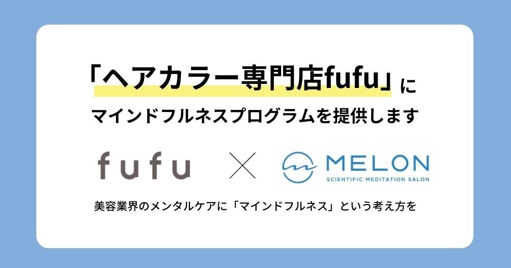 組織の心と感情の課題を解決するエモーショナルマネジメントを提供する株式会社Melon(本社:東京都港区、代表取締役CEO:橋本大佑、以下MELON)は、ヘアカラー専門店を全国に展開する株式会社Fast Beauty(所在地: 東京都港区、代表:高橋 賢)が展開するヘアカラー専門店fufuの全従業員に、MELONのマインドフルネスプログラム「fufu式ととのう」の提供を2024年7月より開始いたしました。本導入により、スタッフの心と身体の健康維持と向上を図り短期的には美容師の離職率の低減、中長期的には生産性の向上を支援します。
