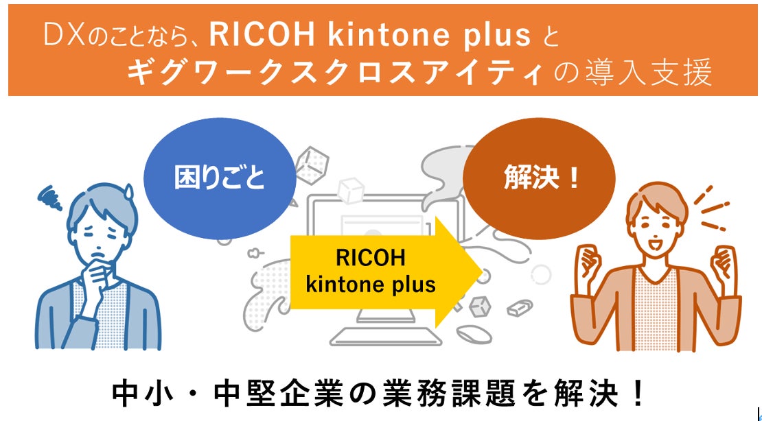 ギグワークスクロスアイティは、創業以来50年間蓄積してきた豊富な経験とノウハウ、および全国に広がる拠点網を駆使し、「RICOH kintone plus(リコー キントーン プラス)」に基づいたDX支援を提供して参ります。