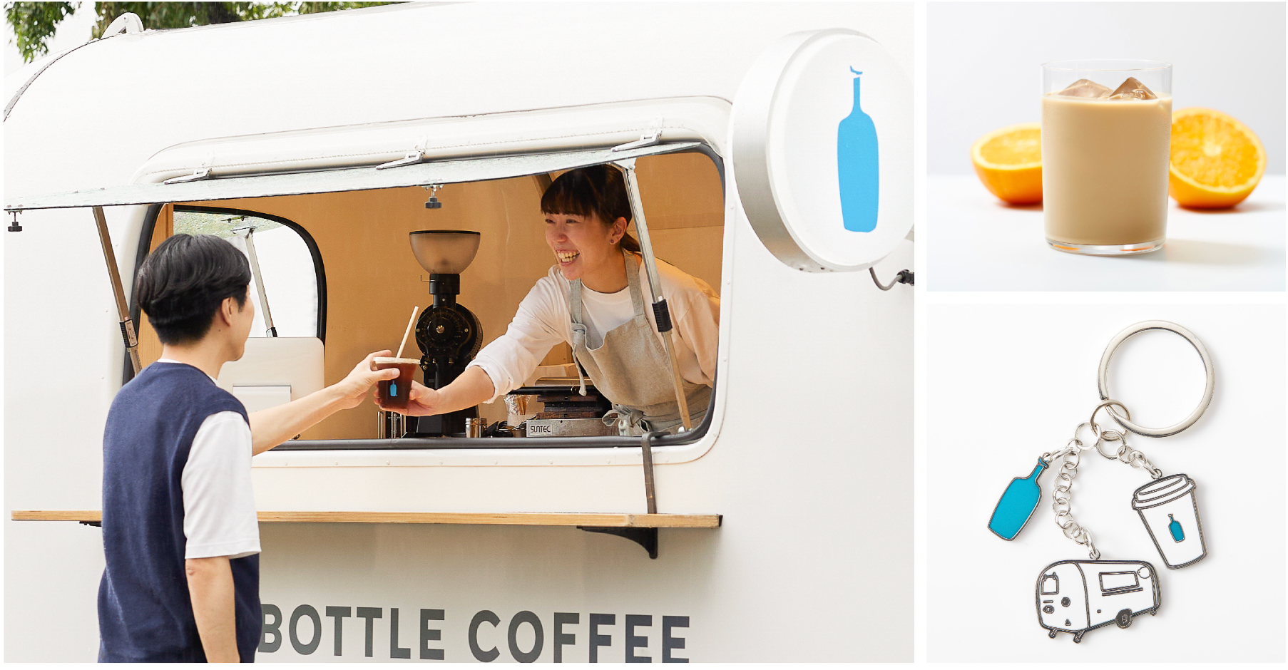 今年の春、警固神社境内に「ブルーボトル コーヒートラック」を設置させていただき、多くの方々に春の訪れを感じながらアウトドアシーンでのコーヒー体験をお楽しみいただきました。福岡市で3度目の出店となる今回も、警固神社境内にコーヒートラックを設置させていただき、暑くなってきたこの時期にぴったりの「オレンジブロッサム ラテ」を限定ドリンクとして新たにメニューにラインナップいたします。また、コーヒートラックをモチーフにした「キーチェーン - コーヒートラック -」をコーヒートラックでしか買えない限定アイテムとして新たに発売を開始いたします。