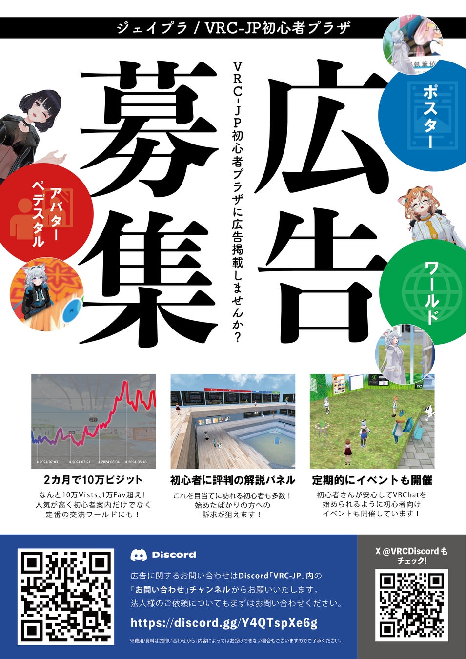 また、2024年6月にはVRChatでオリジナルワールド「VRC-JP初心者プラザ(通称:ジェイプラ)」を公開。オープンから半年間で延べ16万人以上の方が訪れ、著名な配信者も利用する初心者向けワールドへと成長しました。