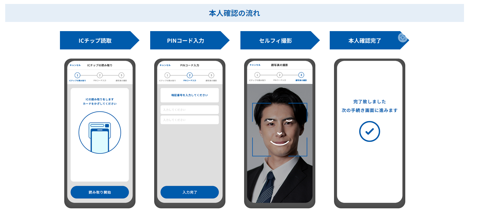 ・公的個人認証、ICチップ読取を活用した身元確認方式にも対応可能。
